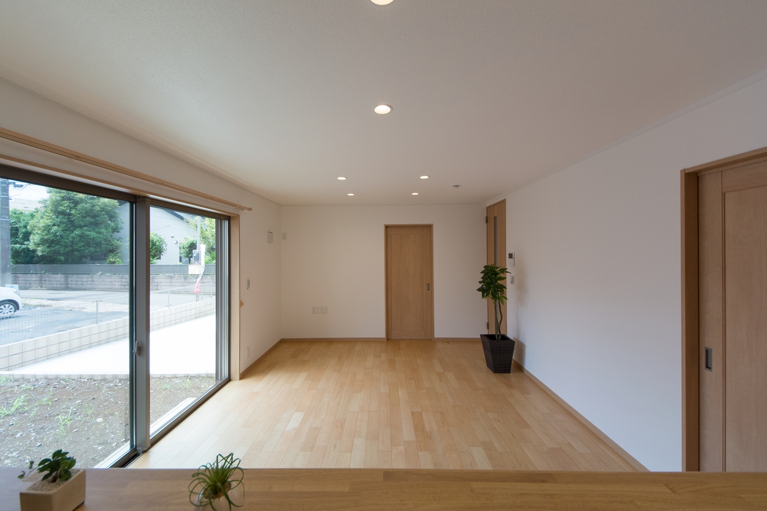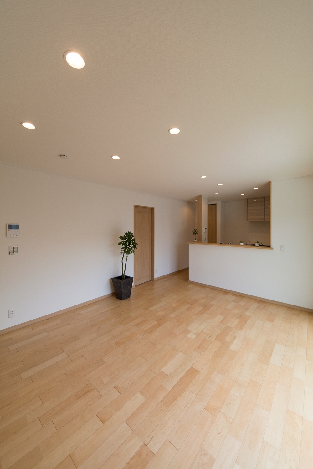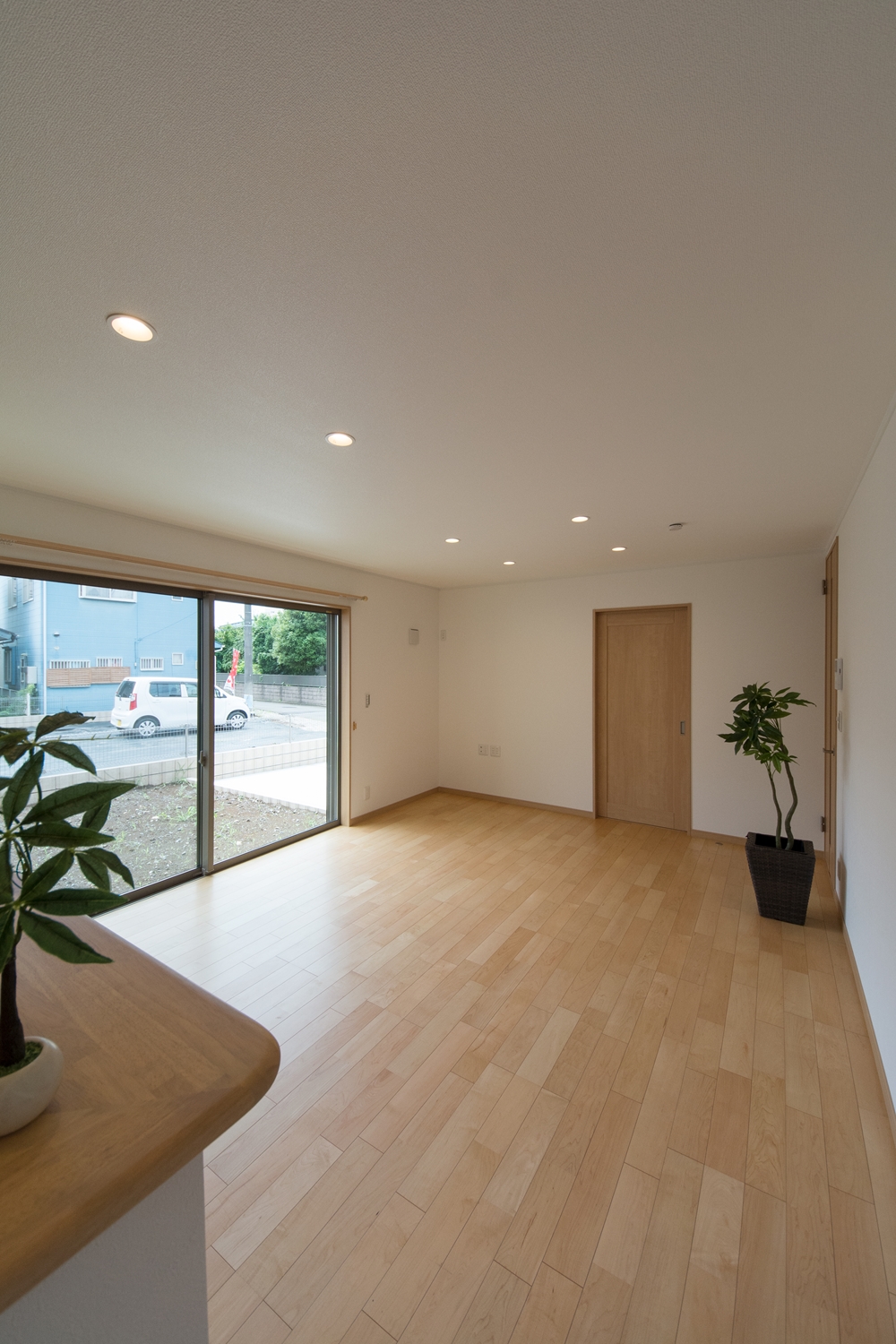 やわらかな木目が印象的なハードメープルのフローリング。ナチュラルでさわやかな空間を演出。