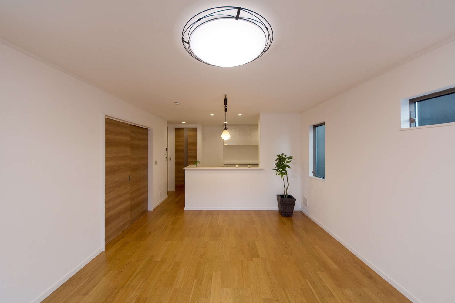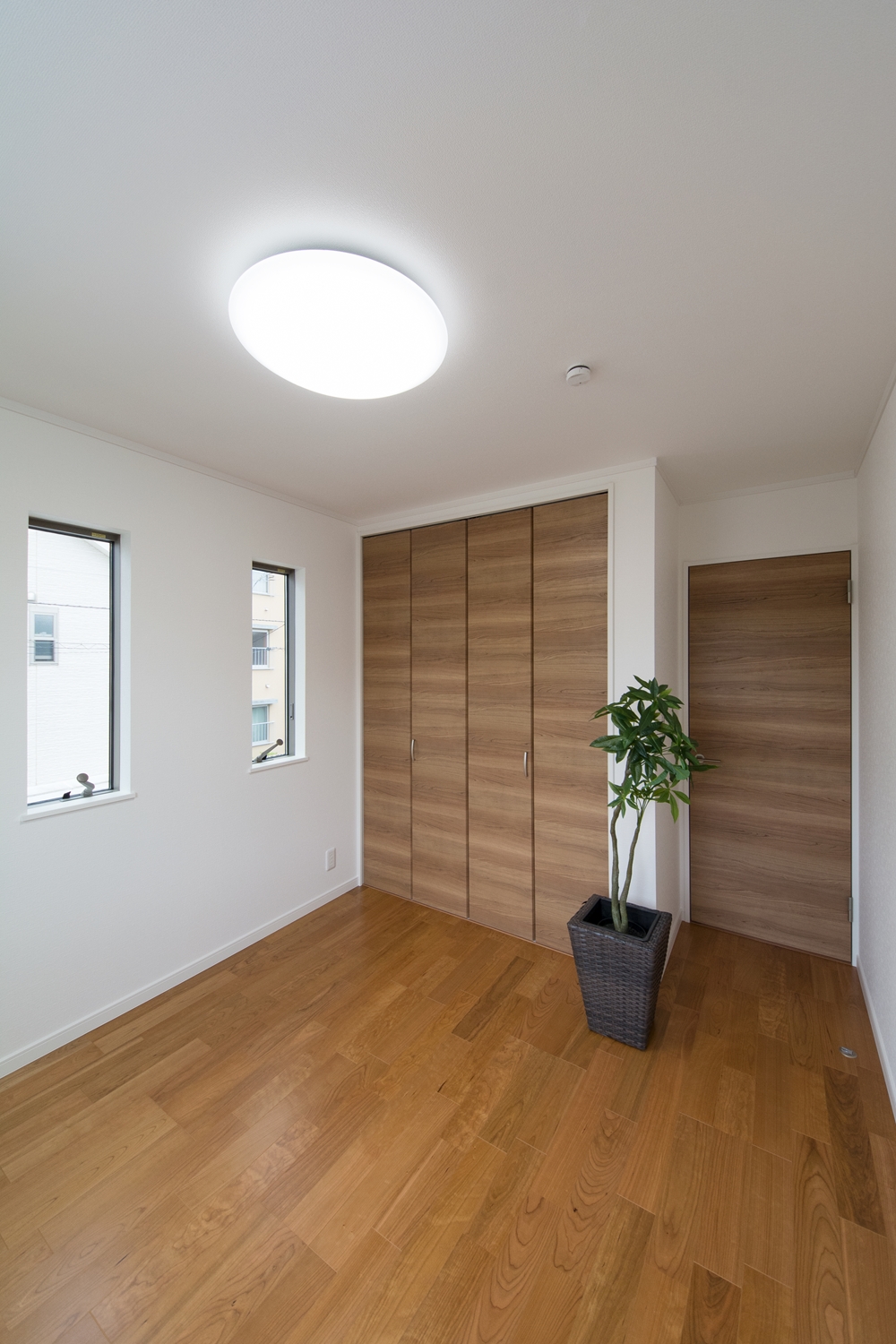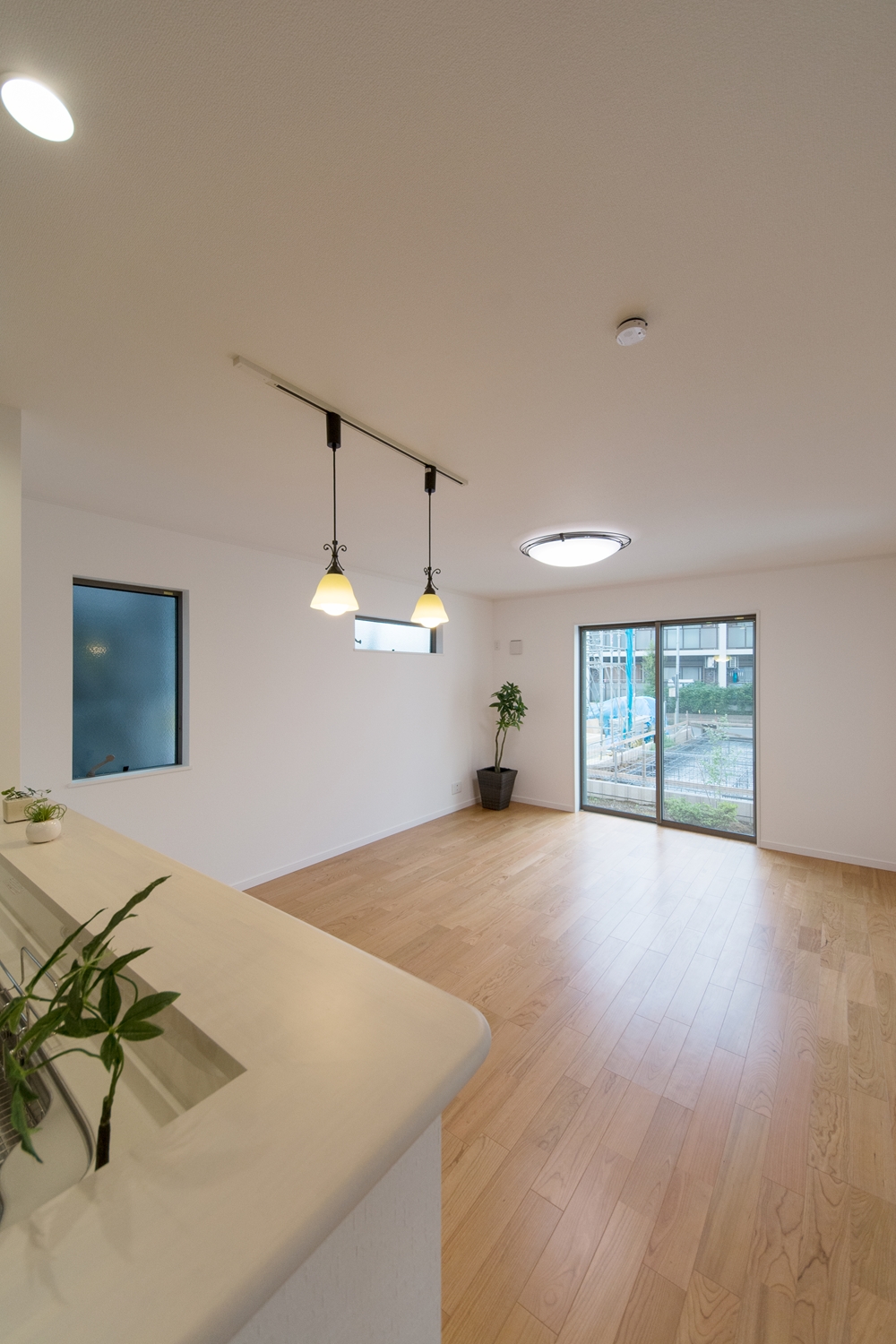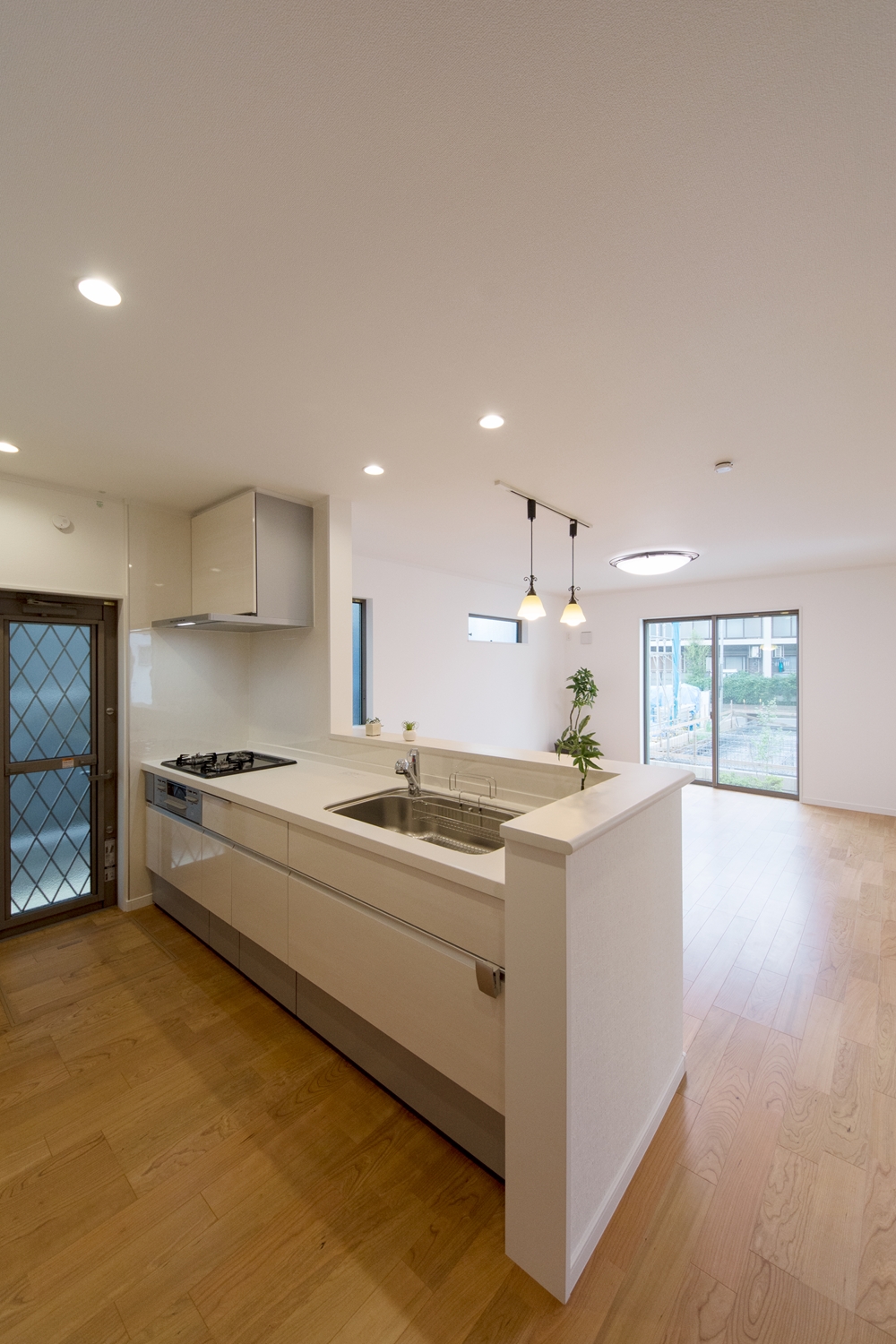 内装・外装共に、白×木目調の優しい色使い。シンプルでスッキリとした印象の住空間が完成しました。