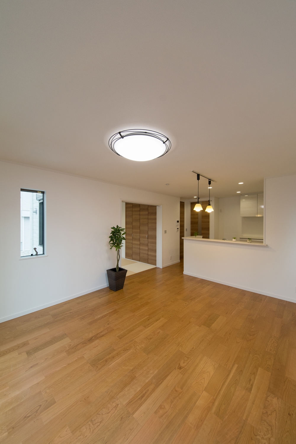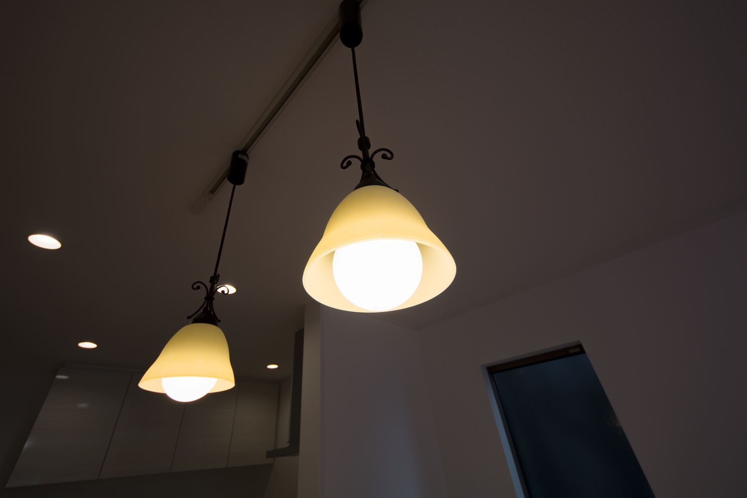 ペンダントライトの柔らかな光が、空間にあたたかみをプラス。