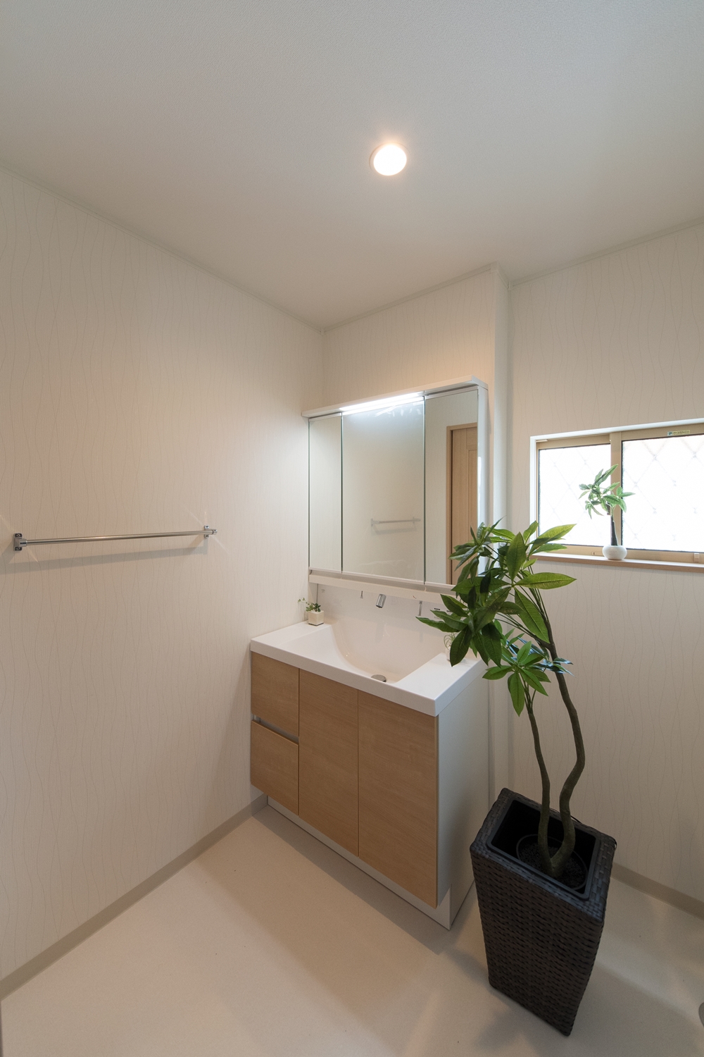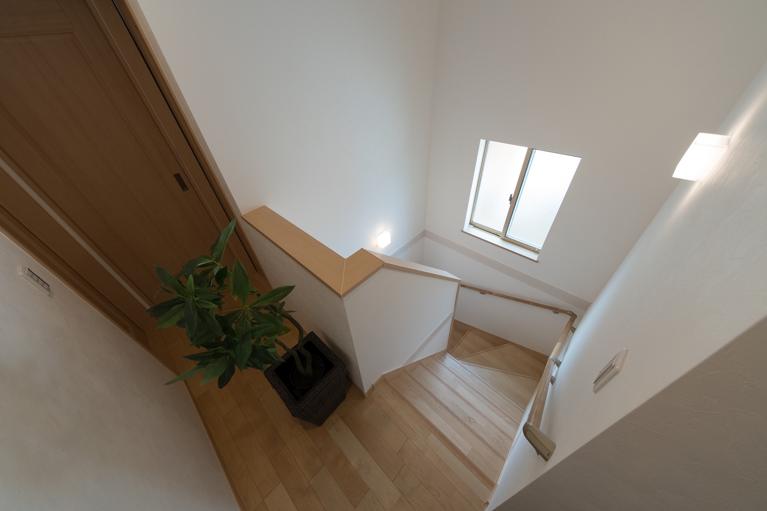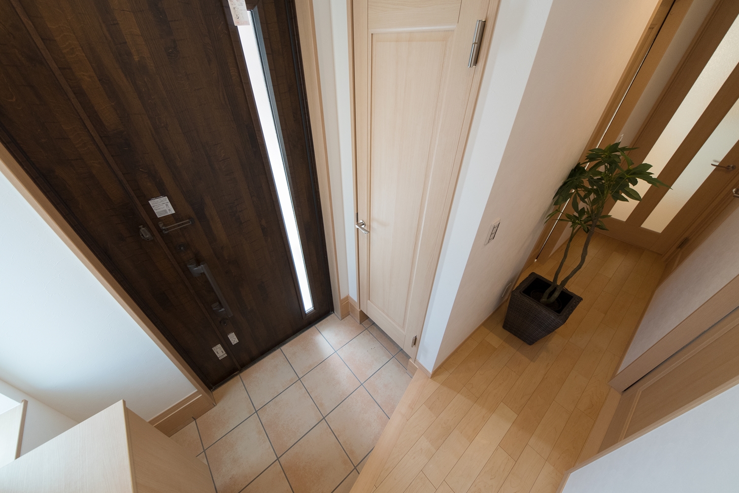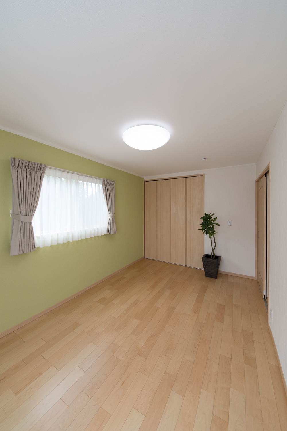 ブラックの木目調サイディングに、白のサッシでアクセントをつけたナチュラル&モダンな外観に仕上がりました。2階洋室やトイレには空間を彩るアクセントクロスを施し、インテリアコーディネートを楽しみます。
