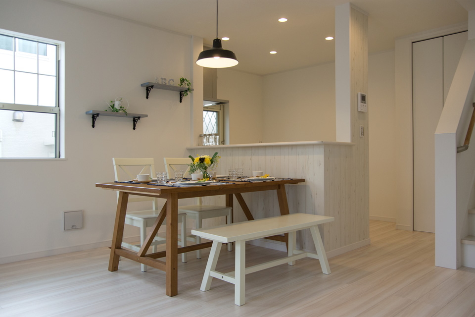 暖かい風合いのおしゃれな外観。落ち着いたやさしい色合いの内観。 南欧を想わせる『ニューバレンシア』の家は家族がより一層楽しく暮らせる空間を演出します。