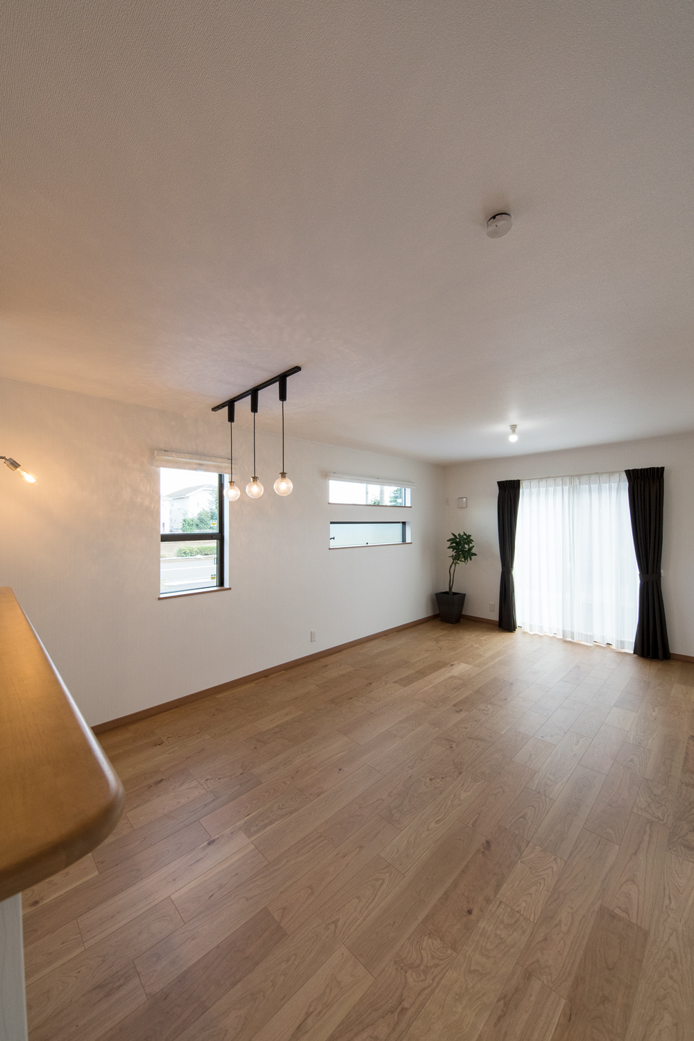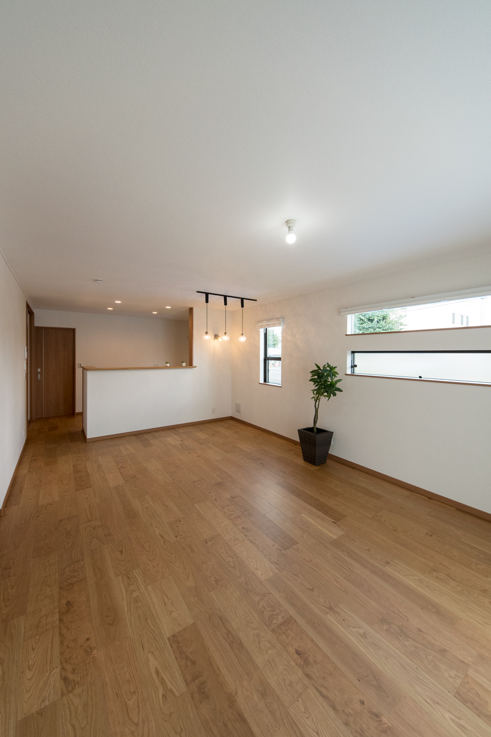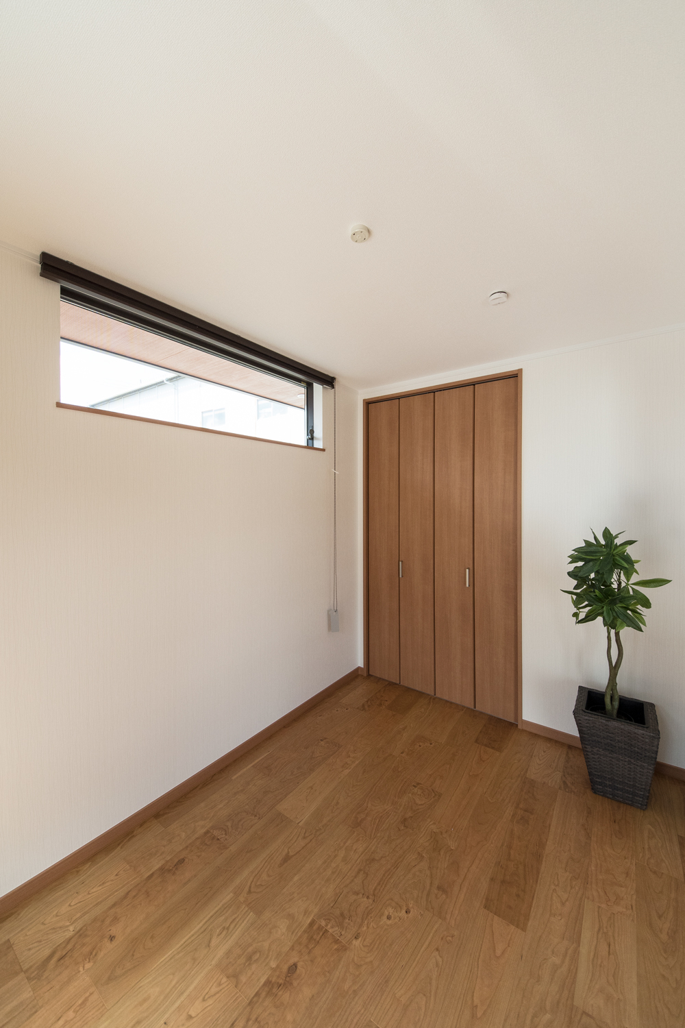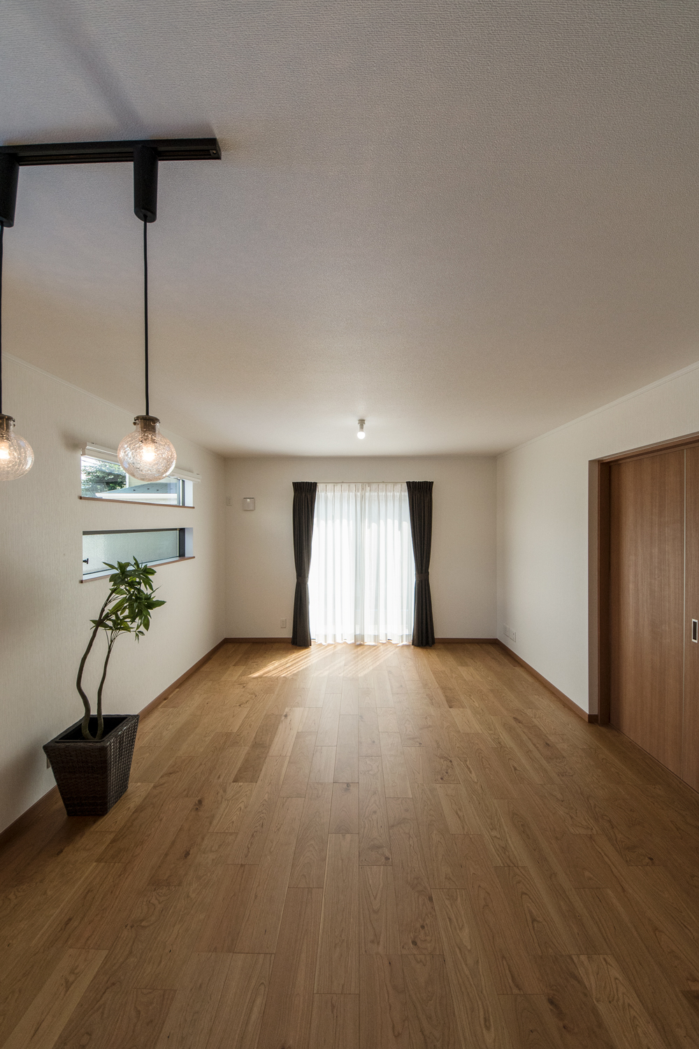 1階洋室/ピアノを置く為、横窓を高い位置に設置しました。床はピアノ用に補強しています。