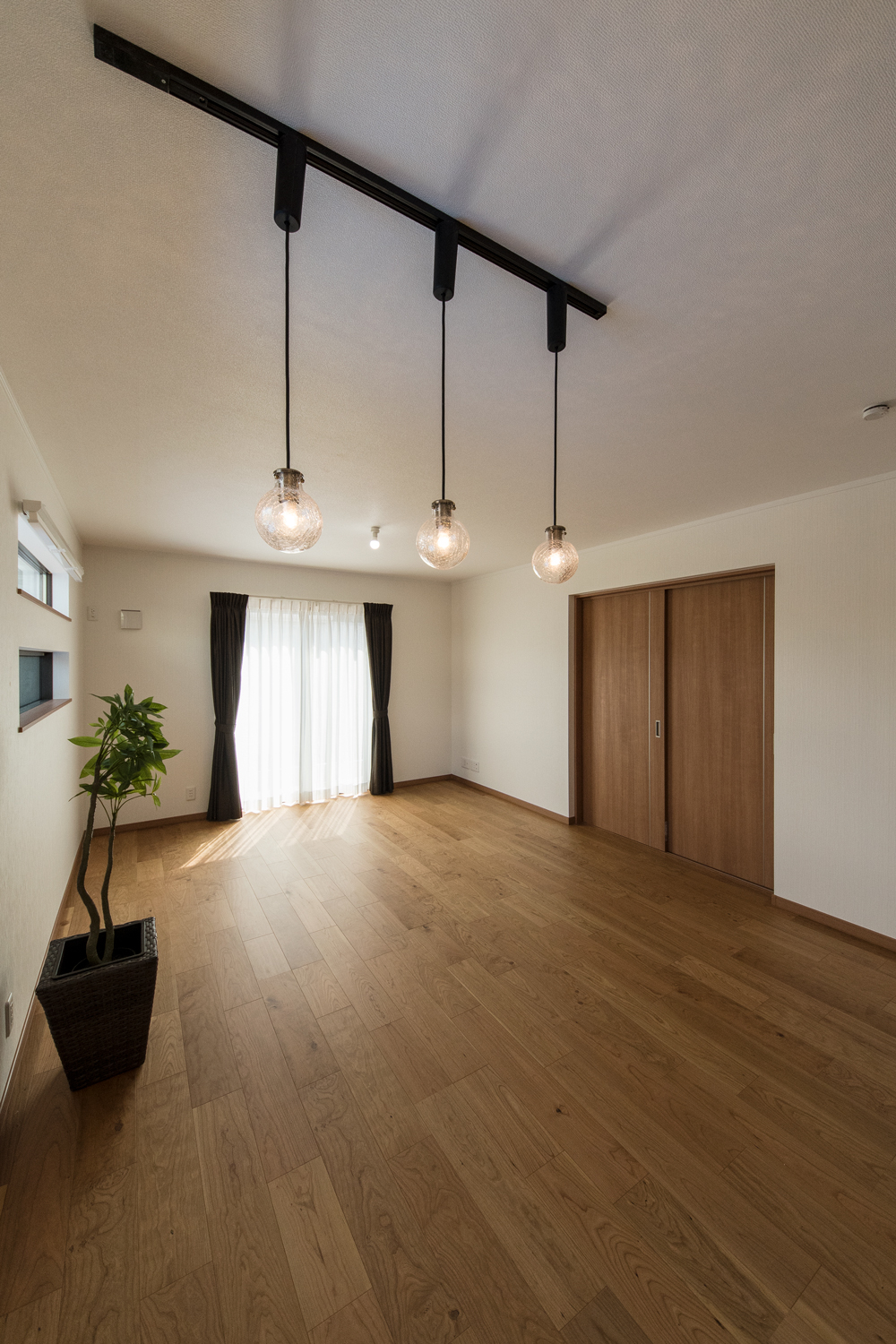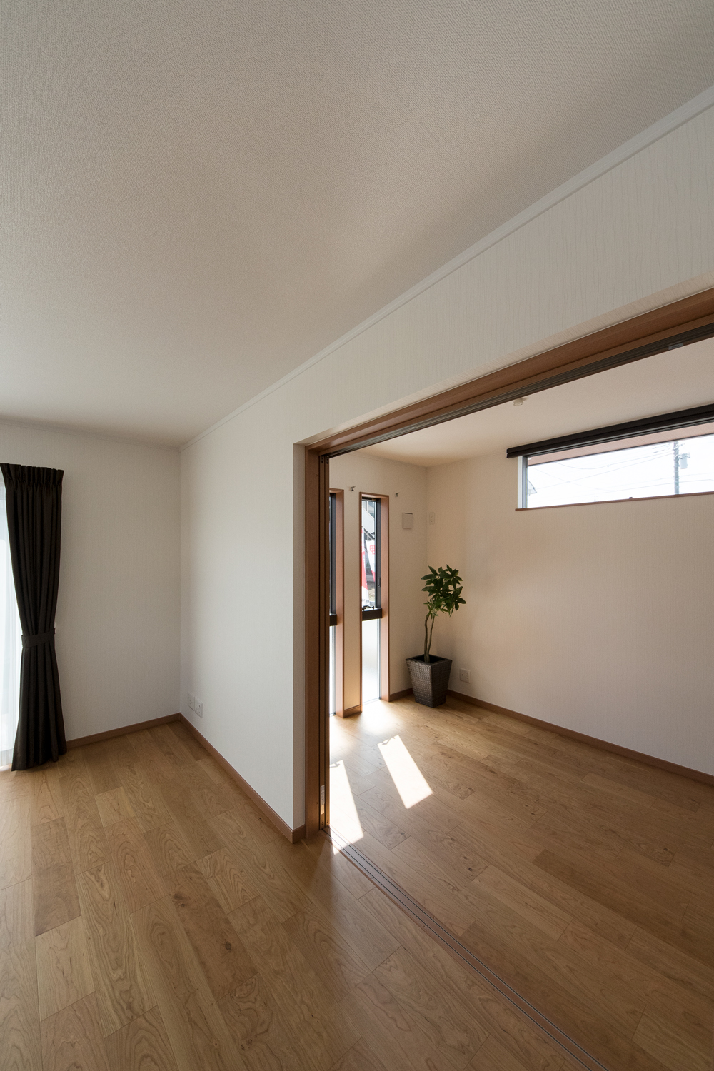 扉を開けてひとつなぎになった洋室はリビングに開放感をプラスしてくれます。