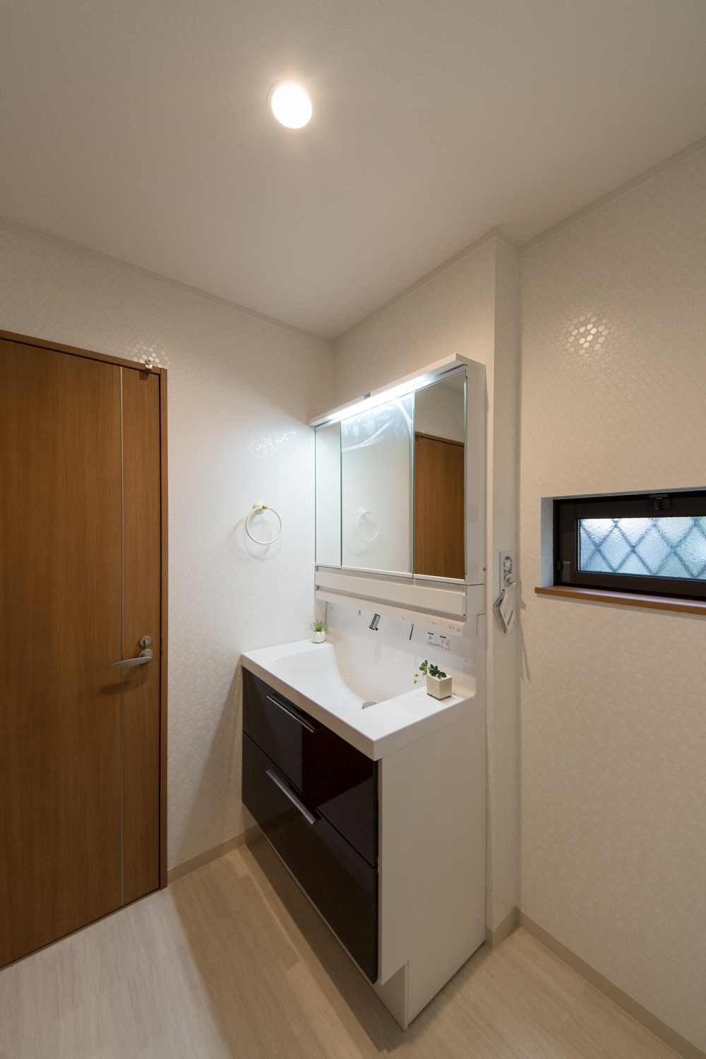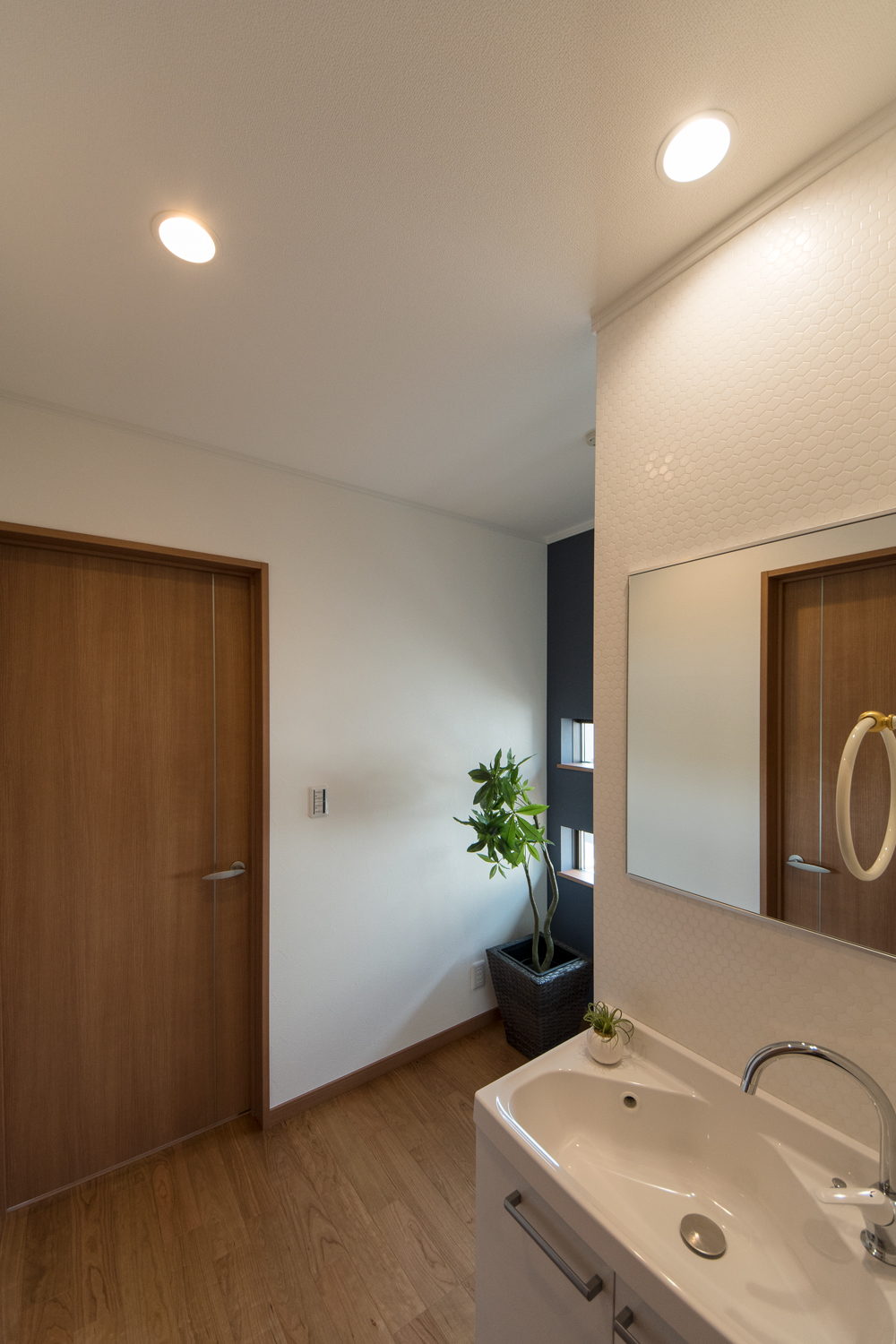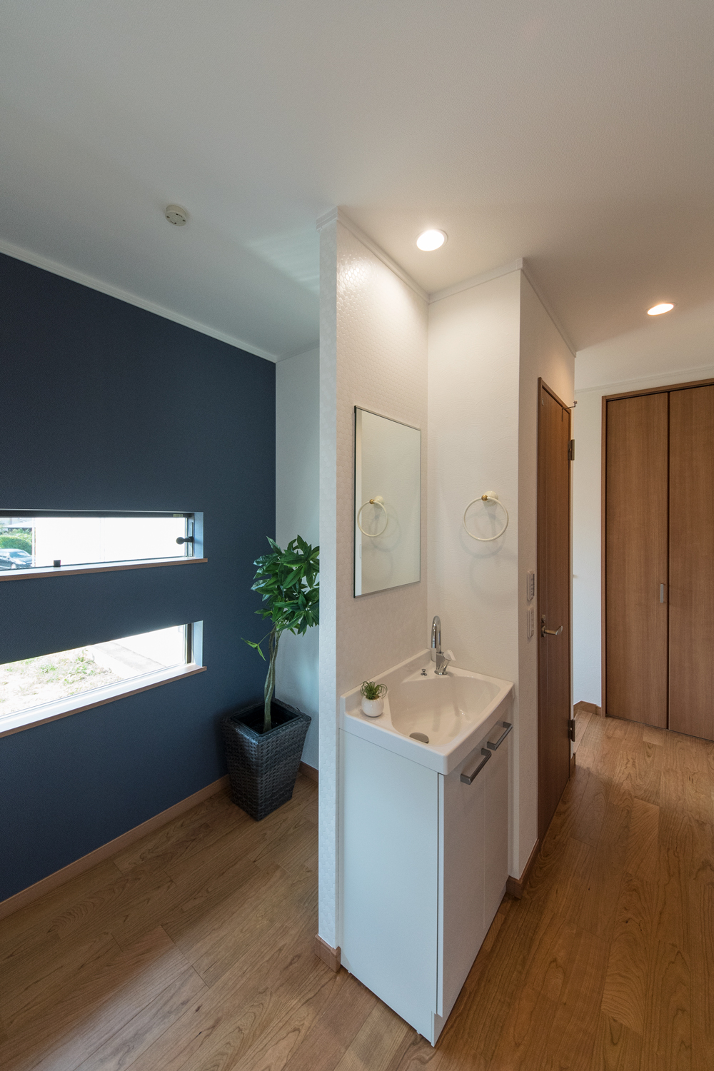 幅にゆとりを持たせゆったりとした2階ホール。洗面を設えました。