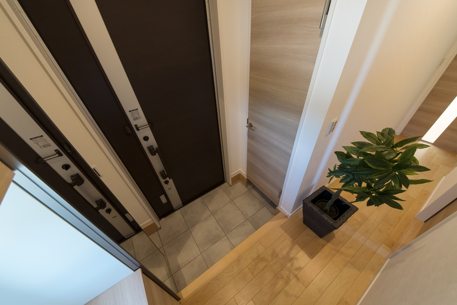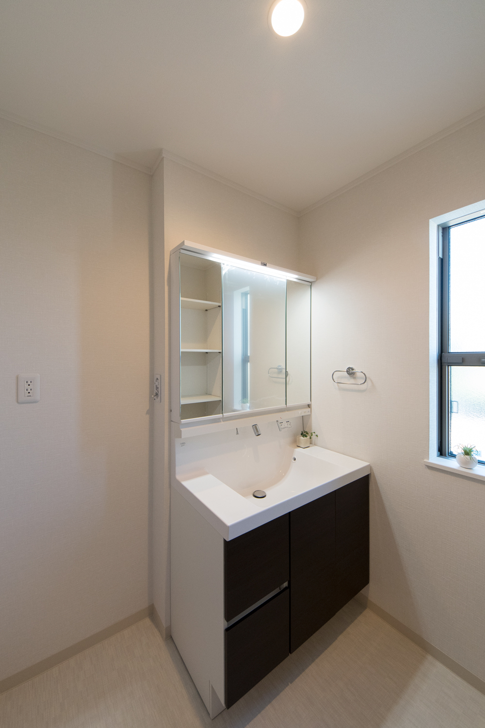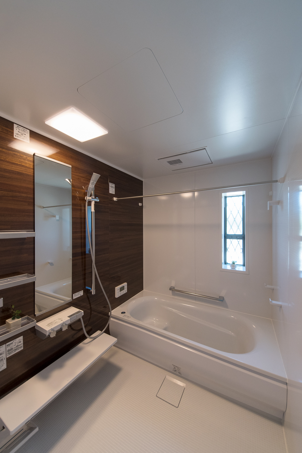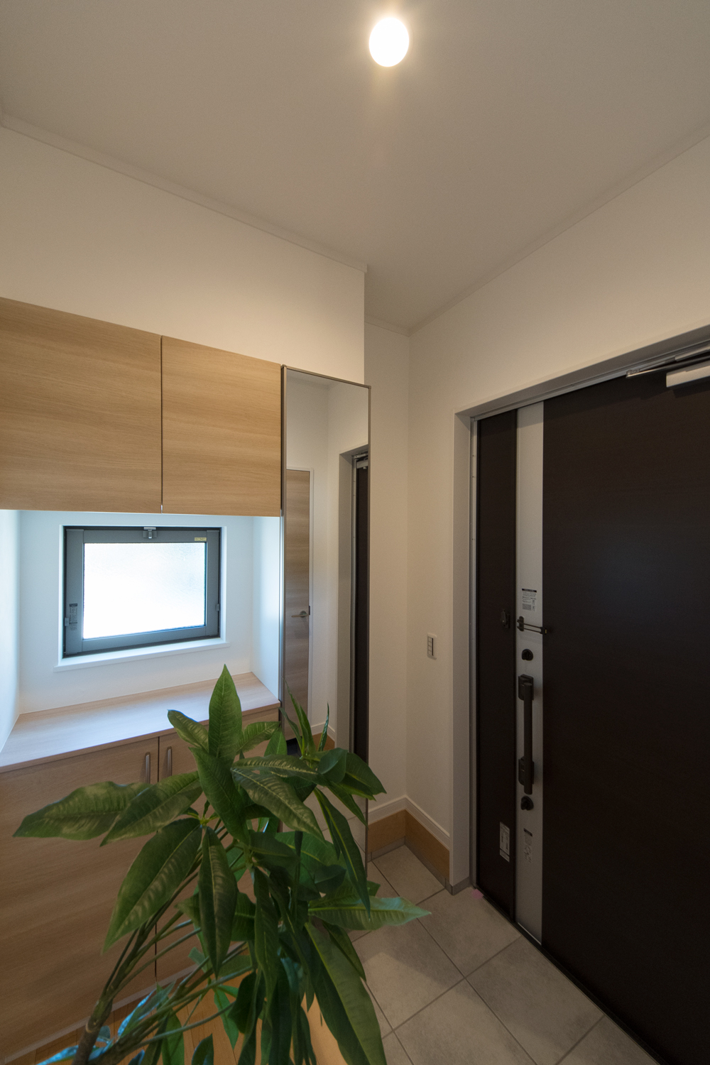 白をベースに、自然な風合いと質感溢れる木調デザインのブラウンをアクセントにした、ナチュラル&モダンな外観に仕上がりました。室内は天井にこだわり、LDKをハイスタッド仕様に、2階洋室は勾配天井を設えました。