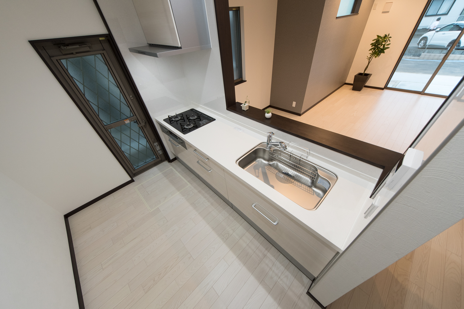リビングを見渡せる対面キッチンはお料理をしながらでもご家族との会話を楽しめます。