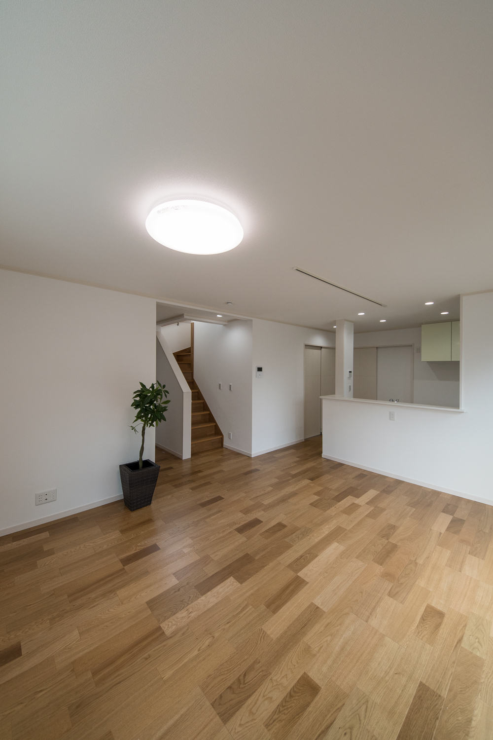 玄関と階段をリビングに直結 皆が自然と顔を合わせる家族思いの間取り