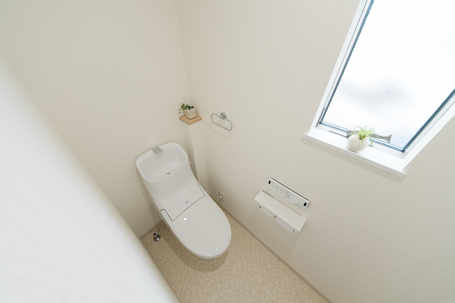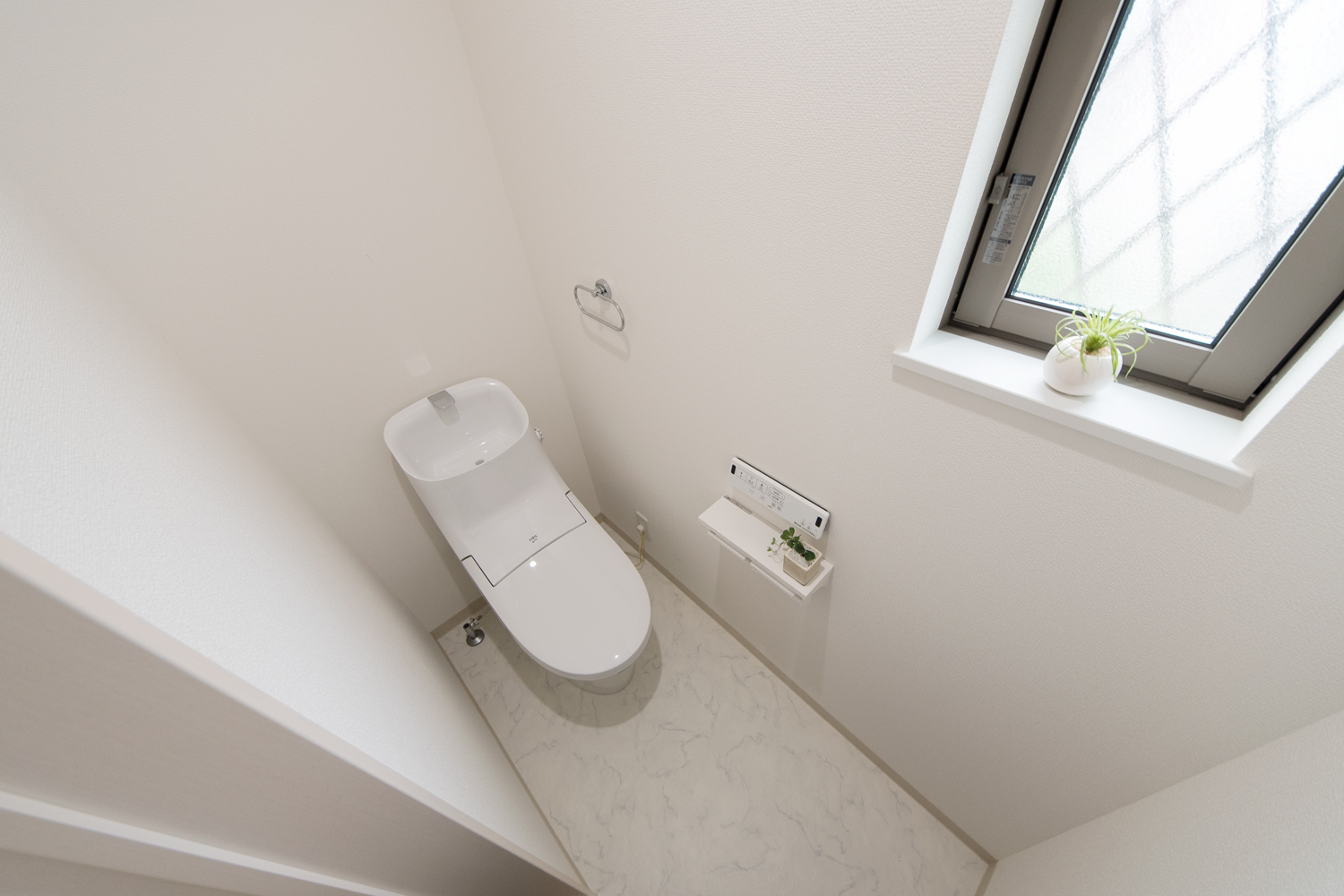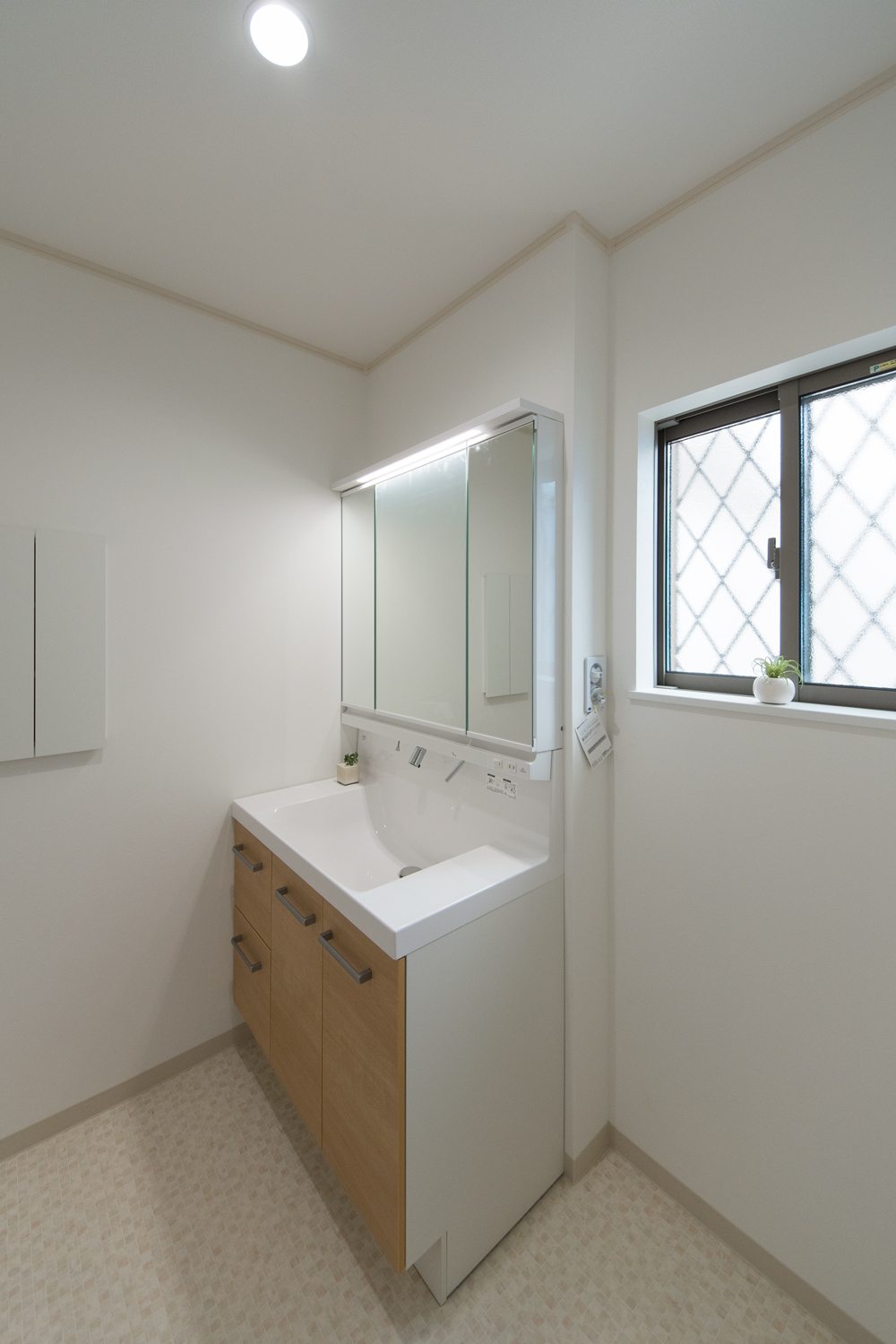 白を基調にアクアブルーのサイディングをアクセントにした、シンプルモダンな外観に仕上がりました。室内は、玄関と階段をリビングに直結させた、皆が自然と顔を合わせる家族思いの間取りとなっています。