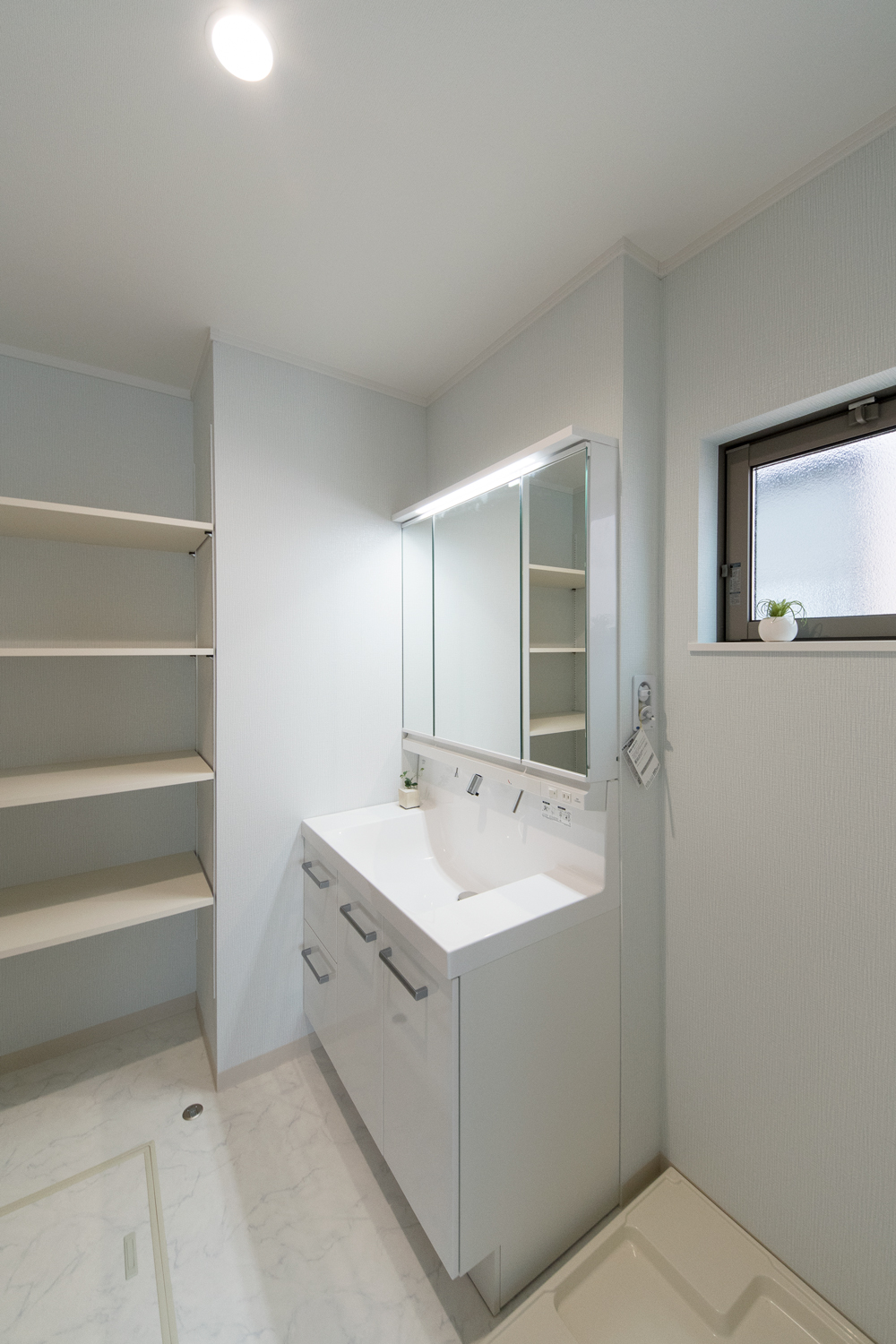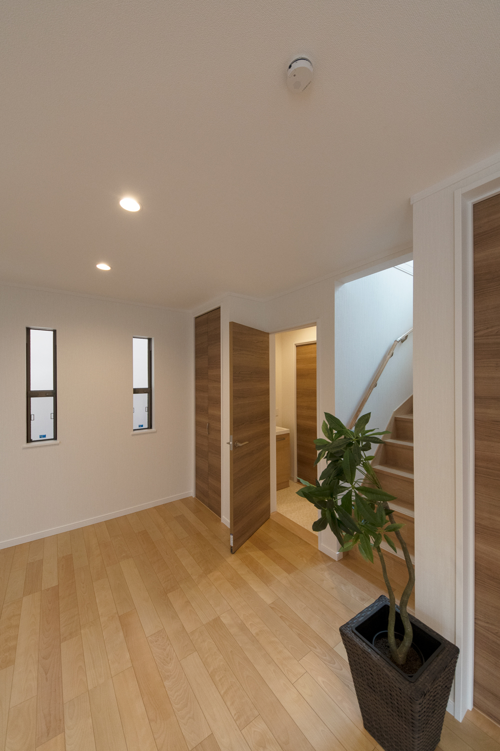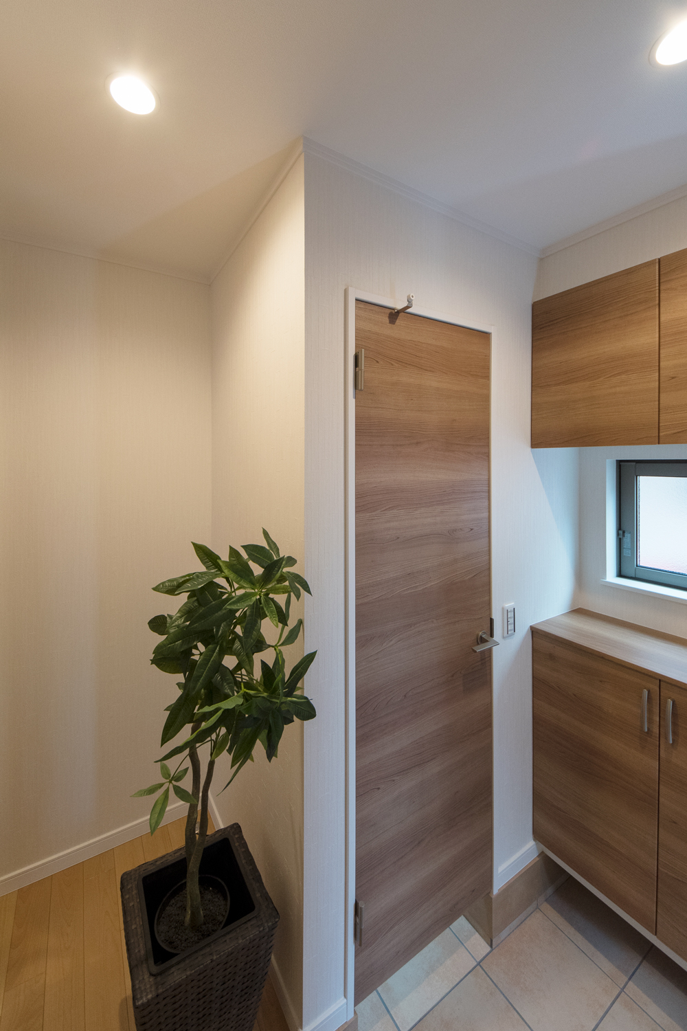 ゲストも使う1階のトイレや手洗いには、生活感の出でしまう浴室や洗濯機を配置しない間取りに。また、洗濯機を2階に配置することで、洗濯の家事動線がスムーズです。プライベートな部分は見せない、ゲストを呼びたくなる理想のお住まいになりました。
