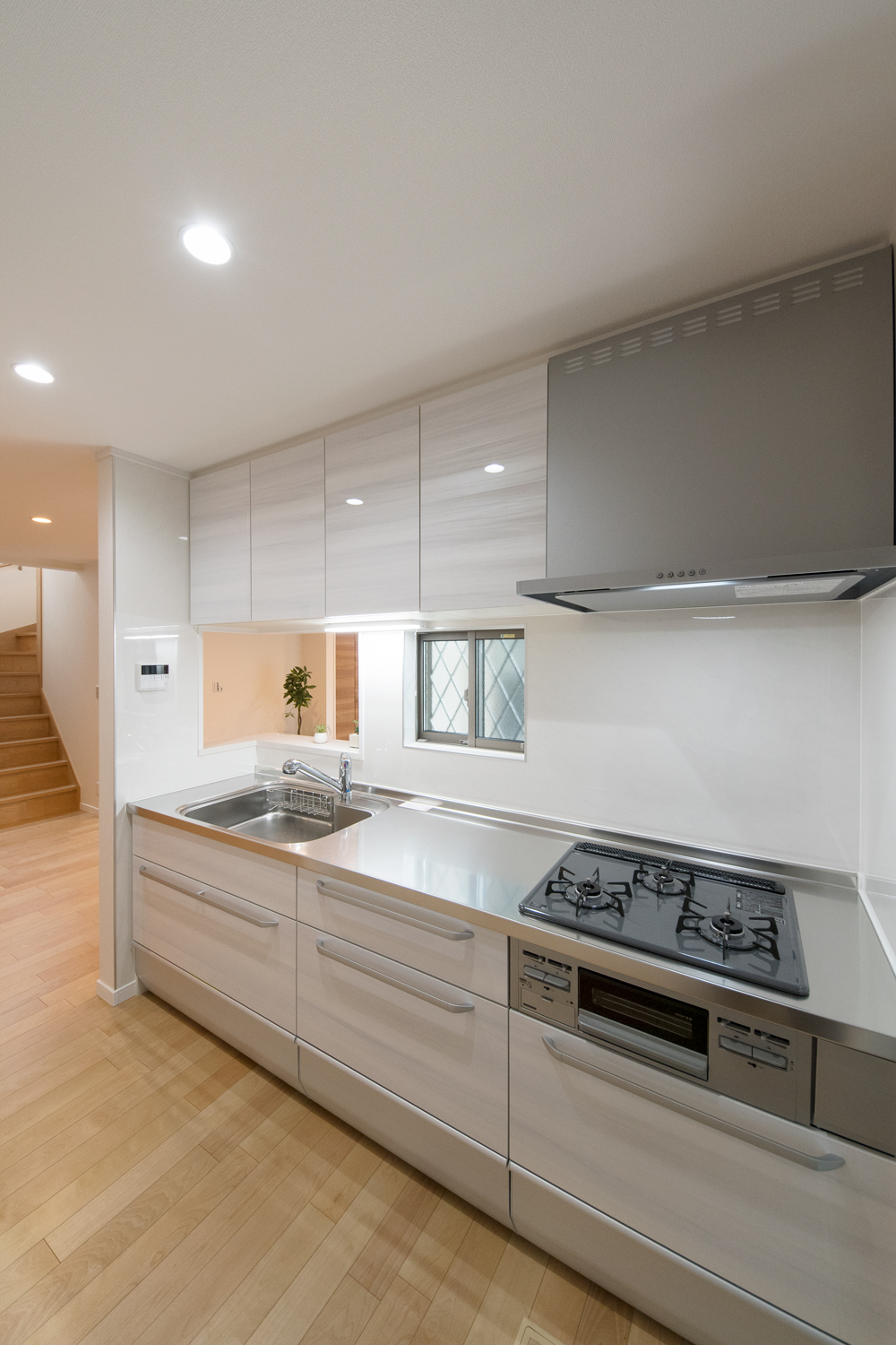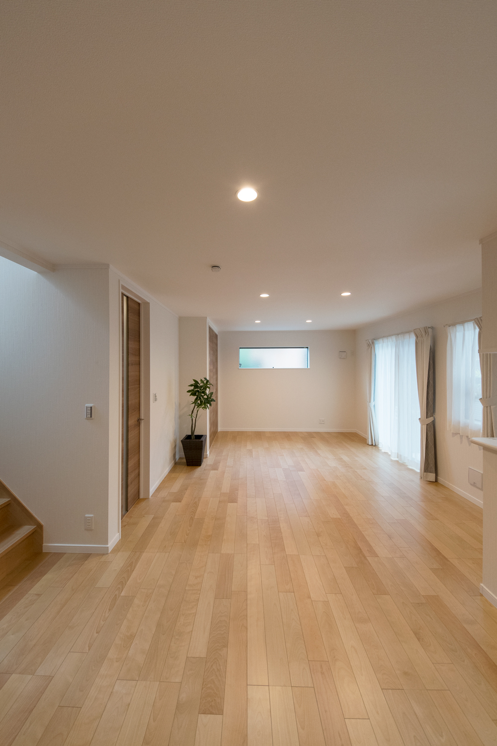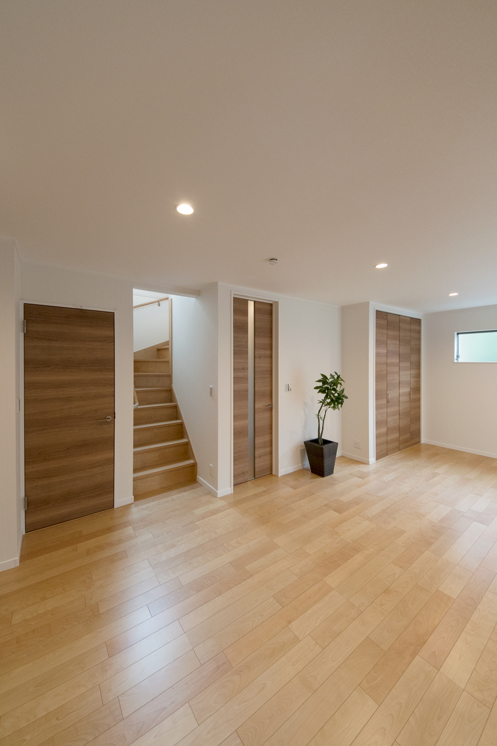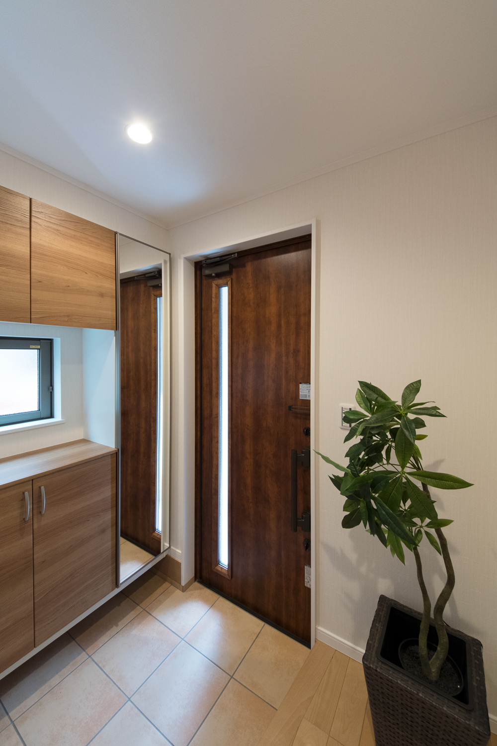 ゲストも使う1階のトイレや手洗いには、生活感の出でしまう浴室や洗濯機を配置しない間取りに。また、洗濯機を2階に配置することで、洗濯の家事動線がスムーズです。プライベートな部分は見せない、ゲストを呼びたくなる理想のお住まいになりました。