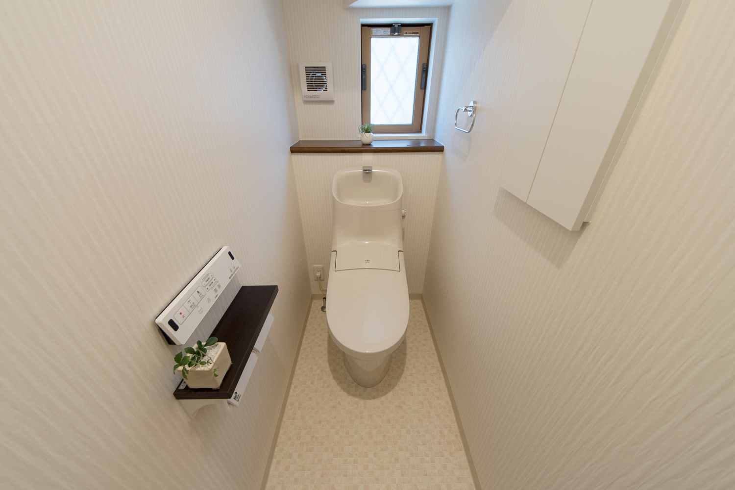 白を基調とした清潔感のある1階トイレ。小窓からの光が明るさをプラスします。
