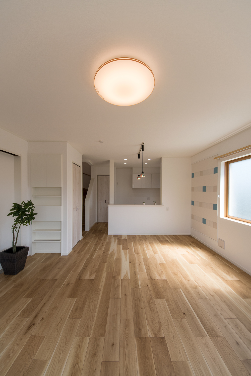 ナラ樫のフローリング。北欧テイストな空間やインテリアに無理なくとけ込み、温かな印象を与えます。