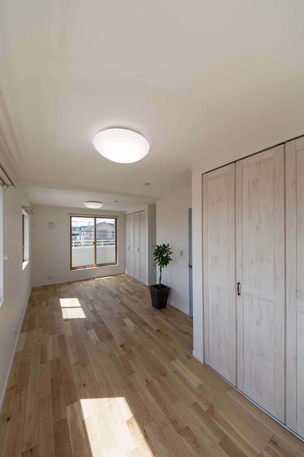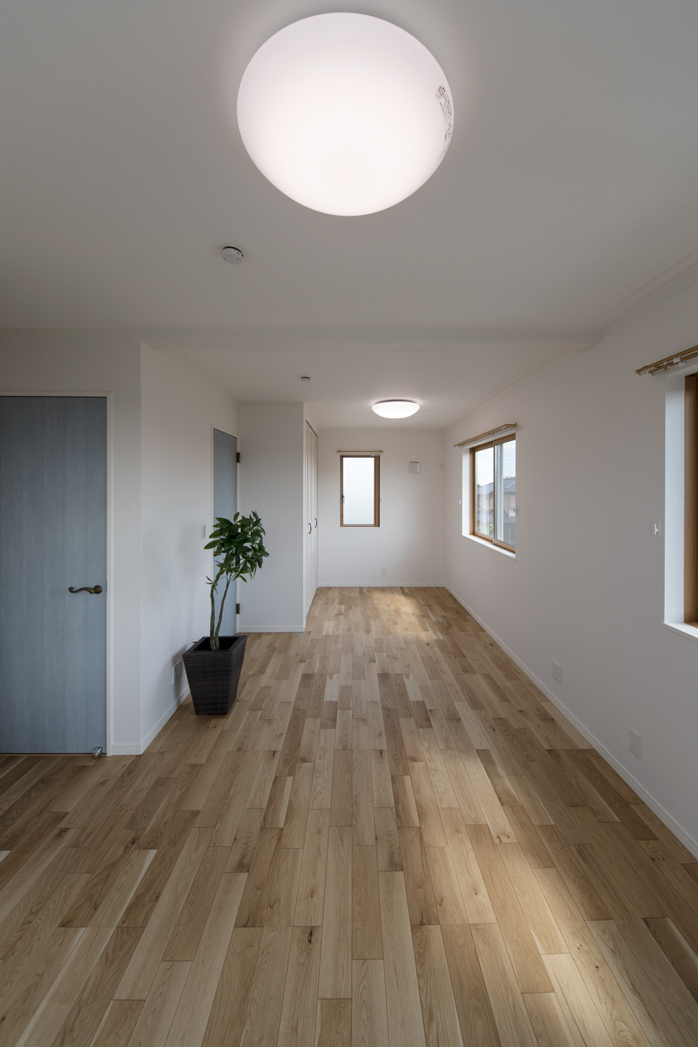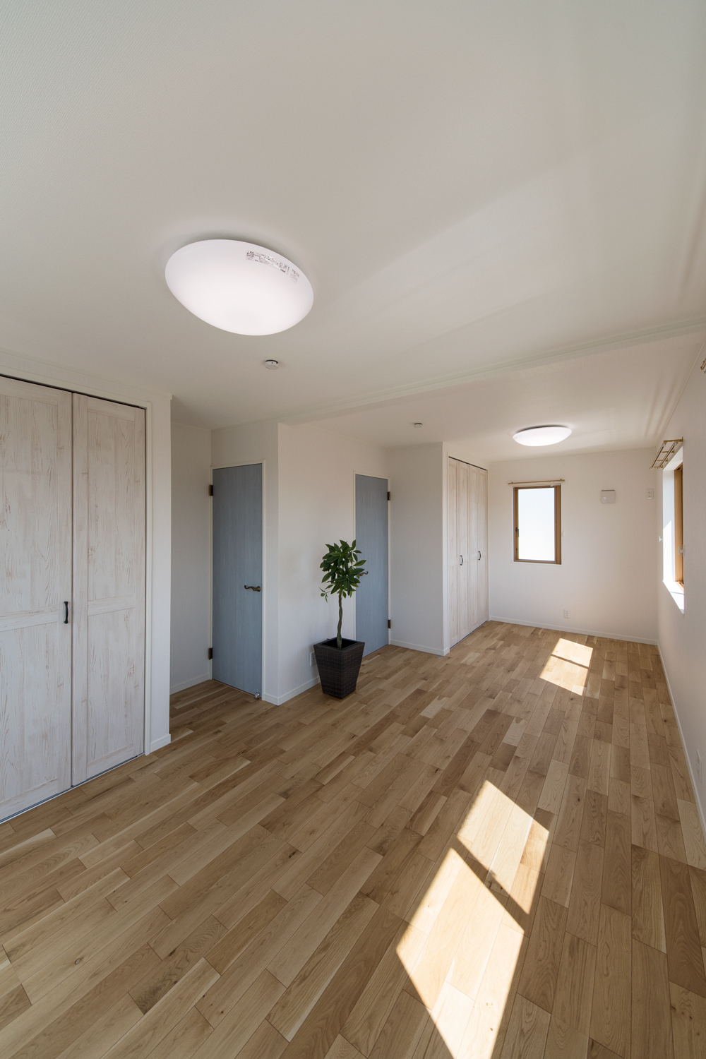将来的に壁を設けて仕切れるので、ライフスタイルの変化に合わせて柔軟に対応できる2階洋室。