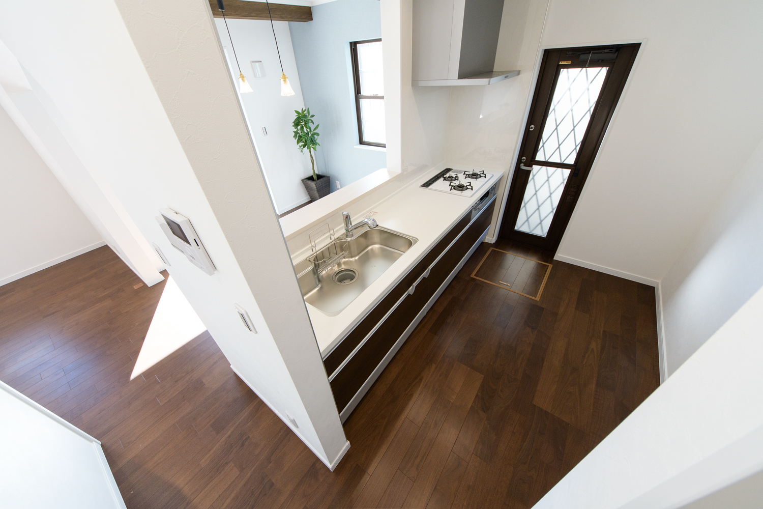 家族の距離が近くなる対面式キッチン。家族がいつもそばに居られる安心感が生まれます。
