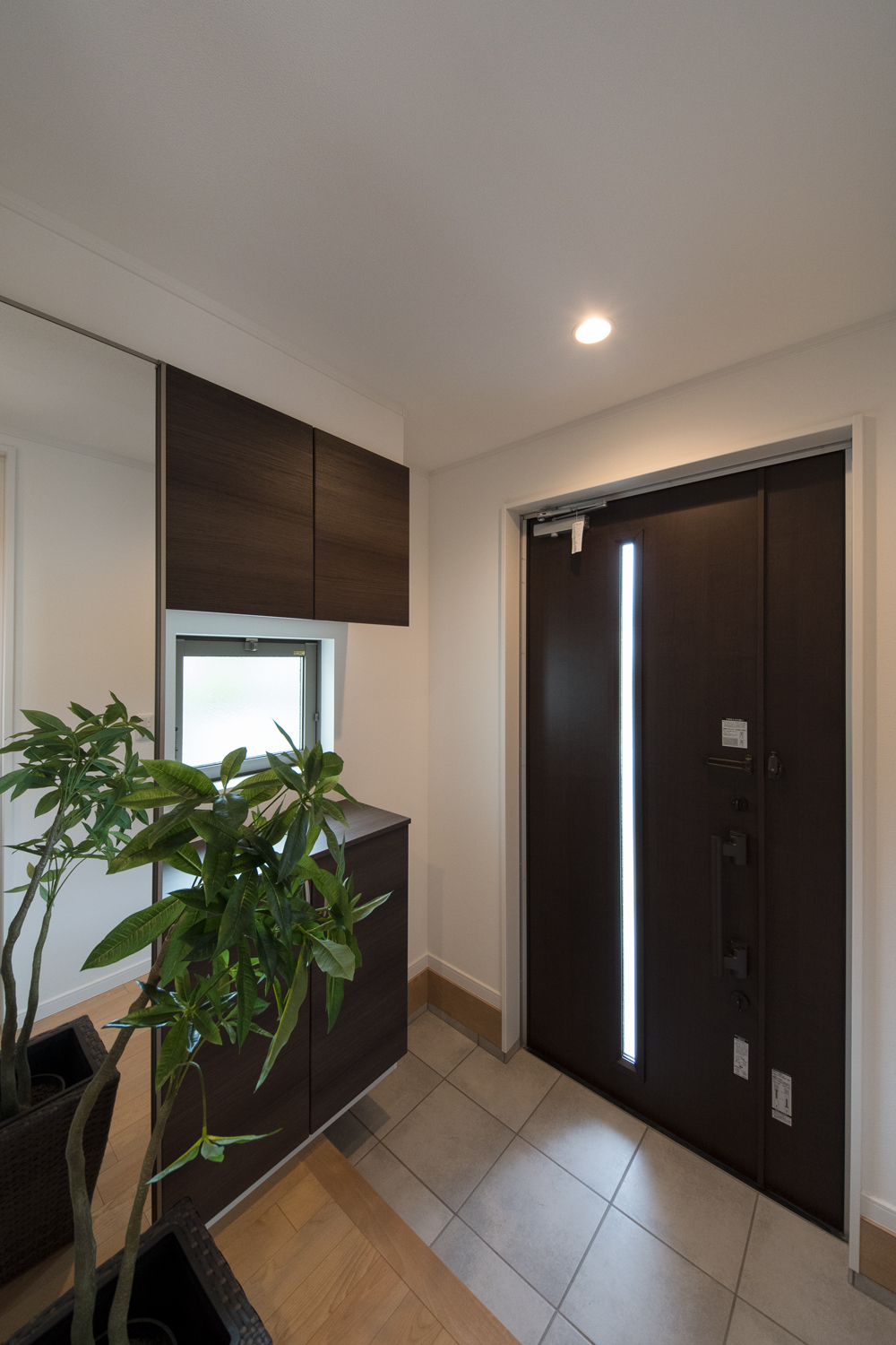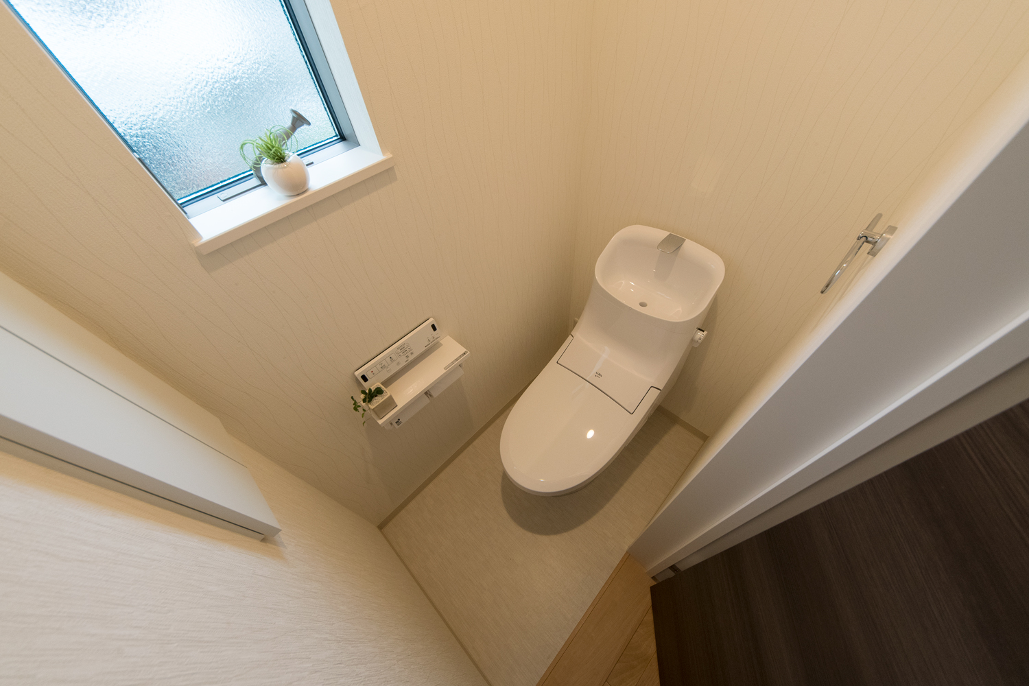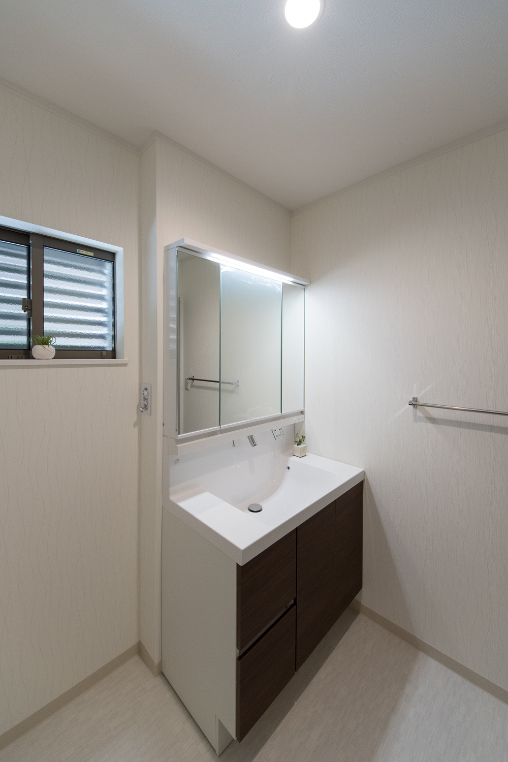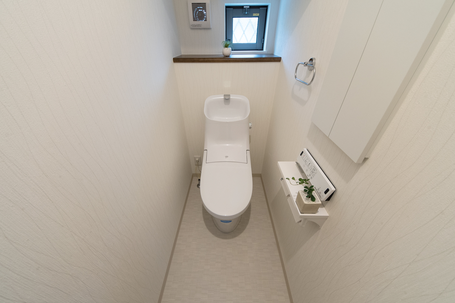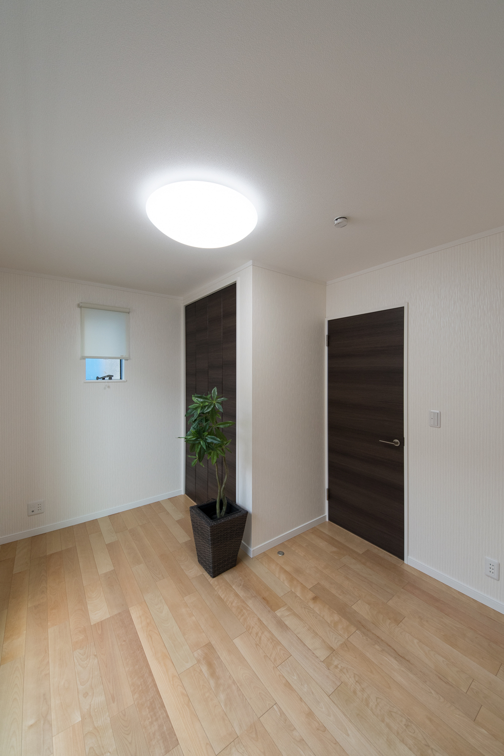 白をベースにグレーの石目調サイディングをアクセントにした、ナチュラル&モダンな外観。勾配天井に天窓を設えたダイニングは、光のあふれる空間となり、目覚めの良い朝を迎える明るいダイニングが完成しました。