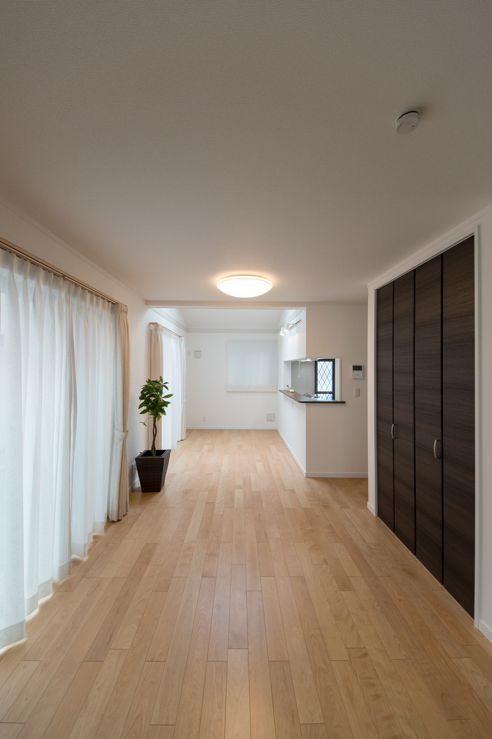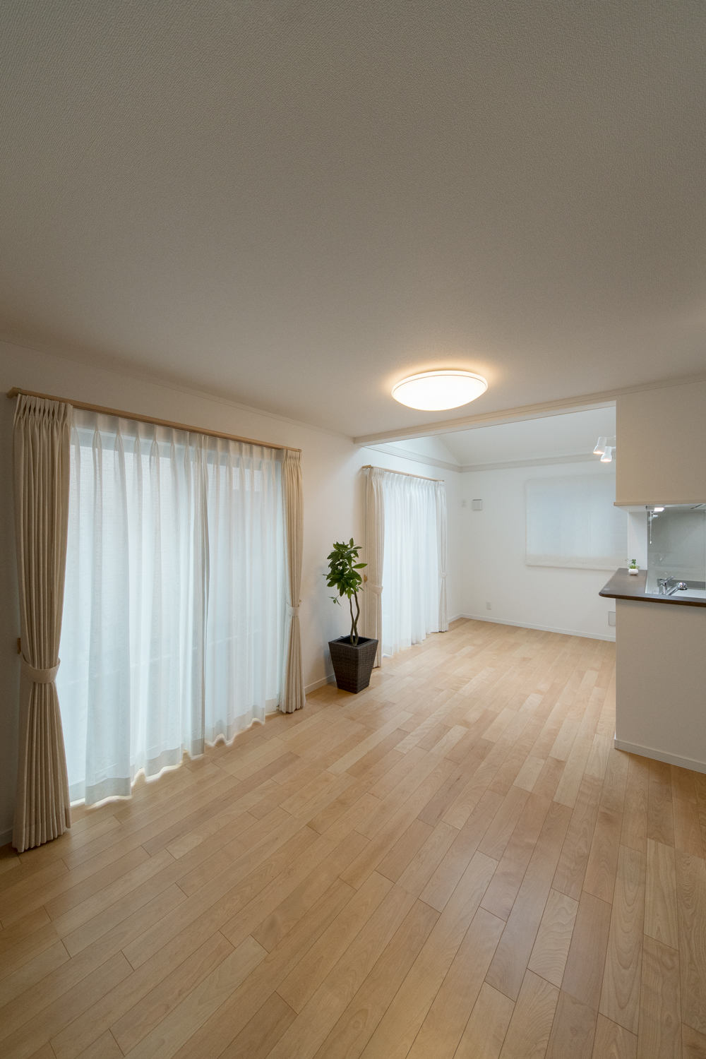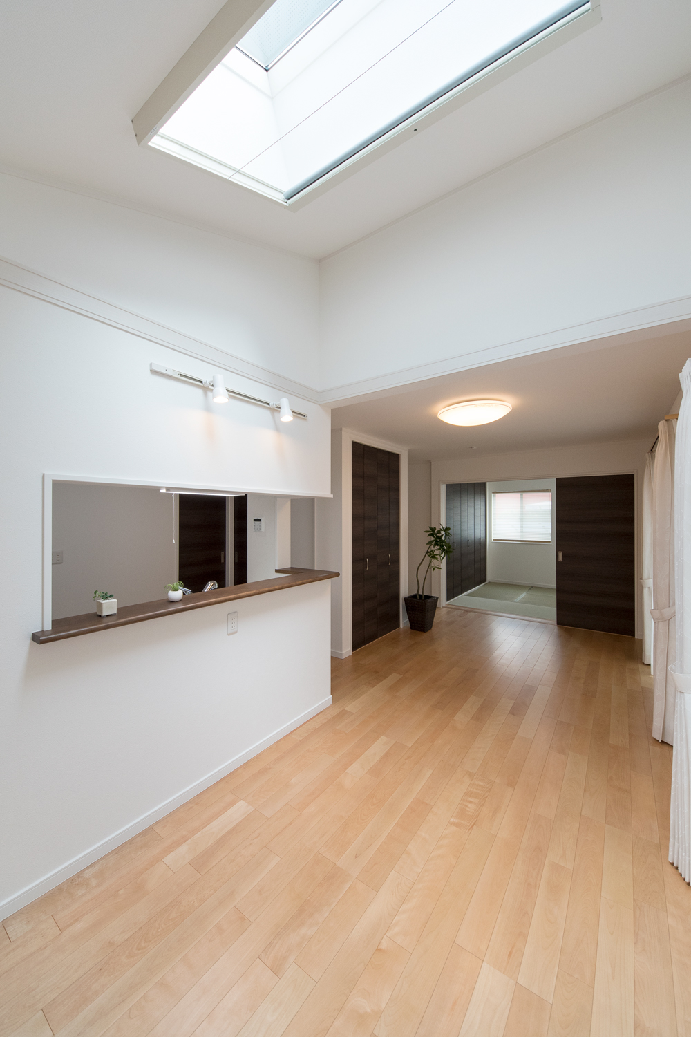 勾配天井に天窓を設えた、光のあふれる空間 目覚めの良い朝を迎える明るいダイニング