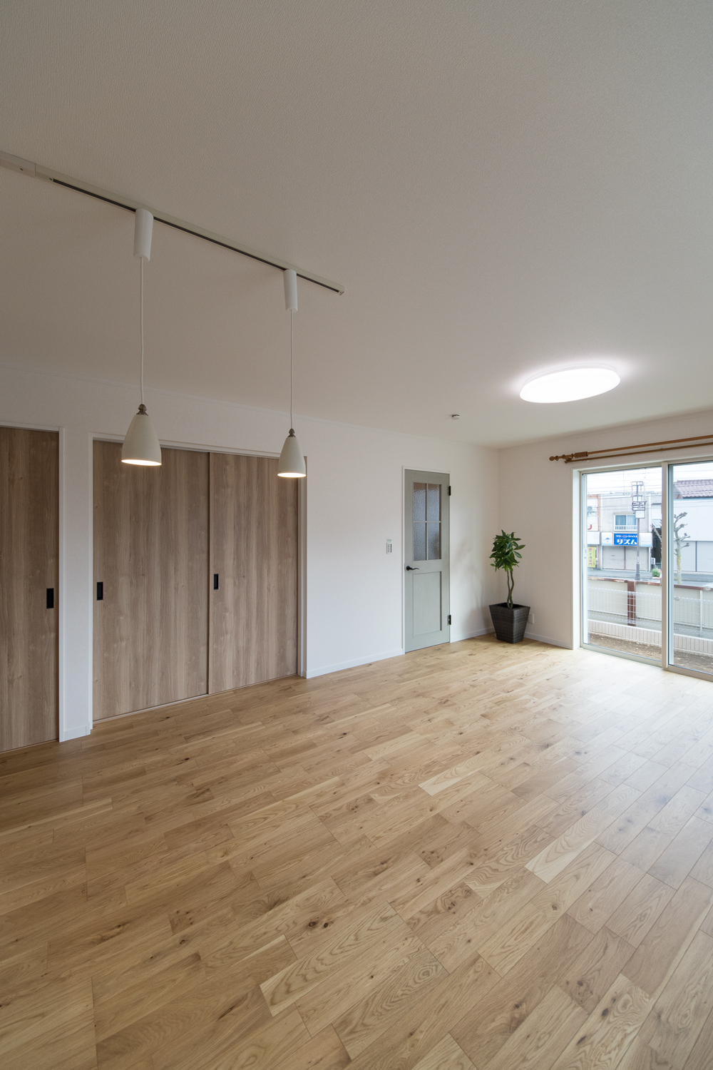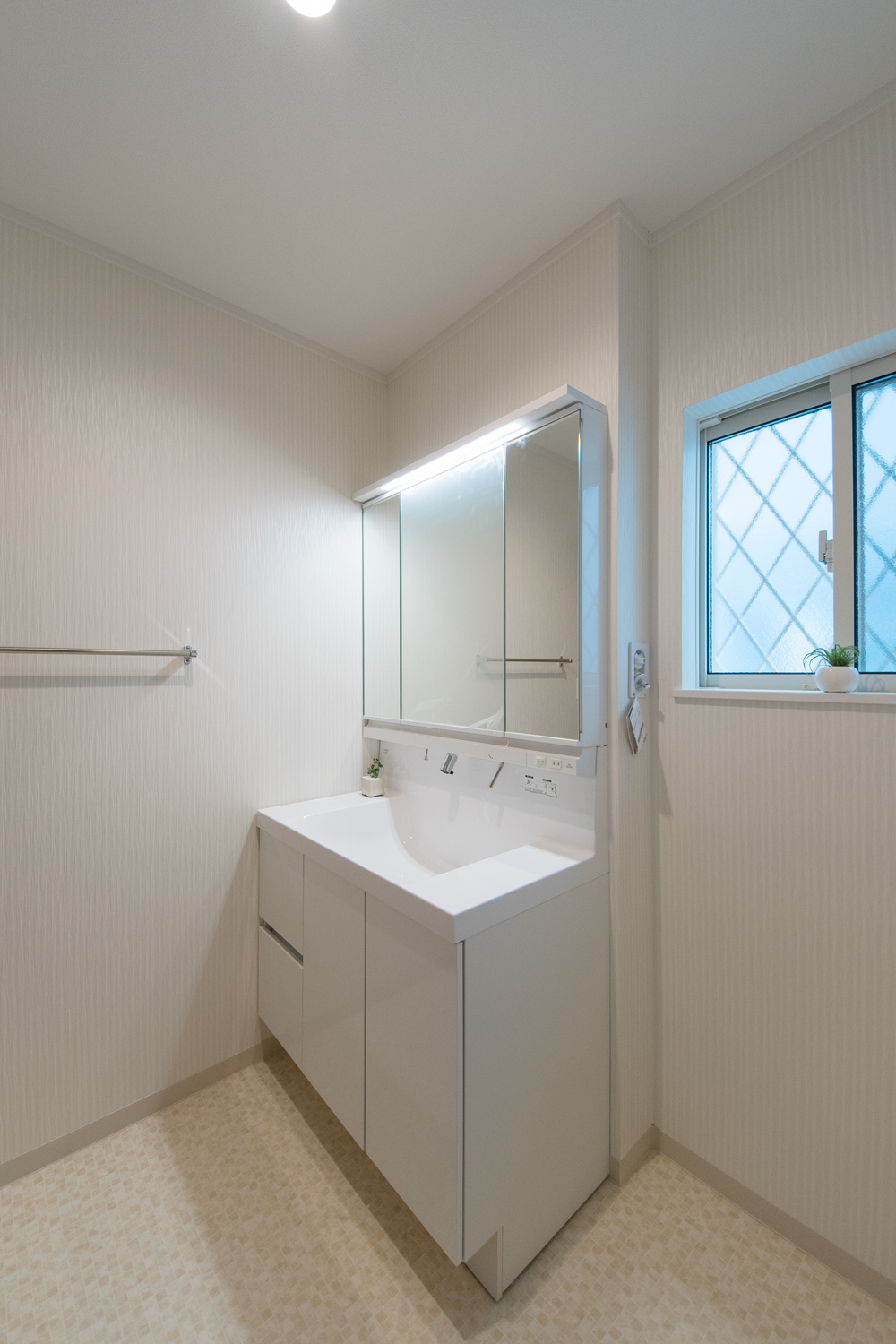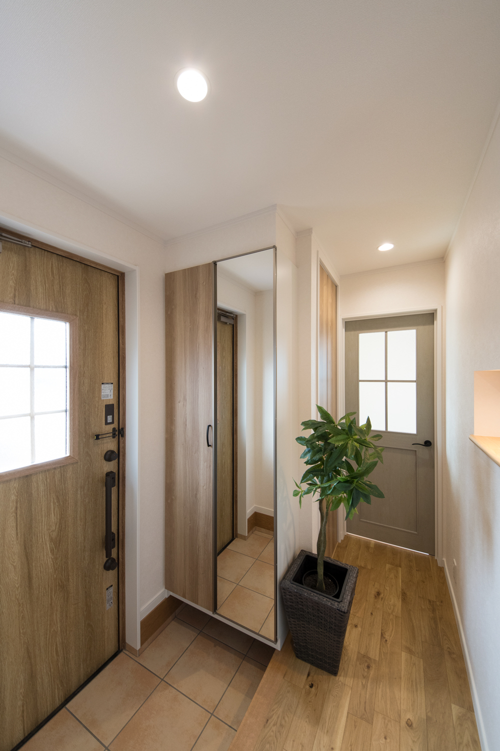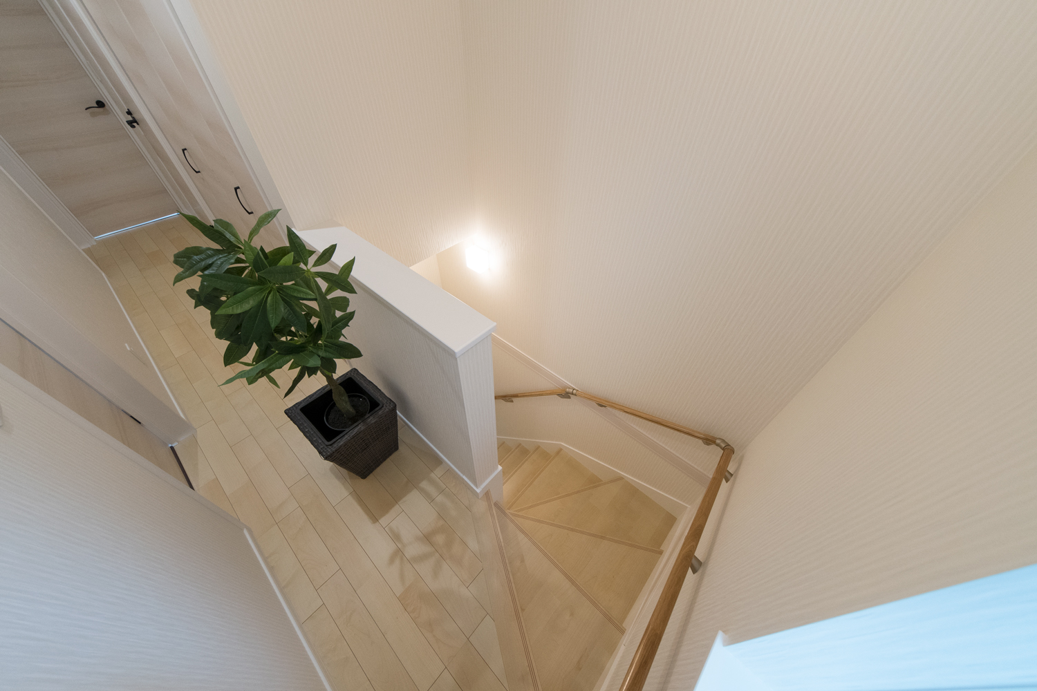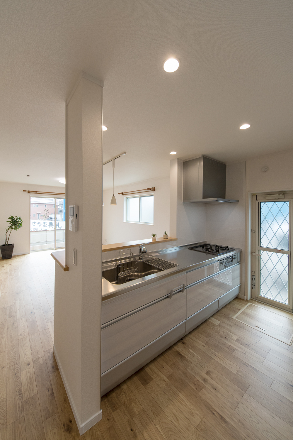 白を基調に、明るい木目調のサイディングをアクセントにした、ナチュラル&モダンな外観。室内には、便利な畳敷きスペースを設えました。床だと痛いけど、畳だとゴロンとできるから嬉しい♪フローリングもイイけど、畳もやっぱり好き!!癒しの空間が完成しました。