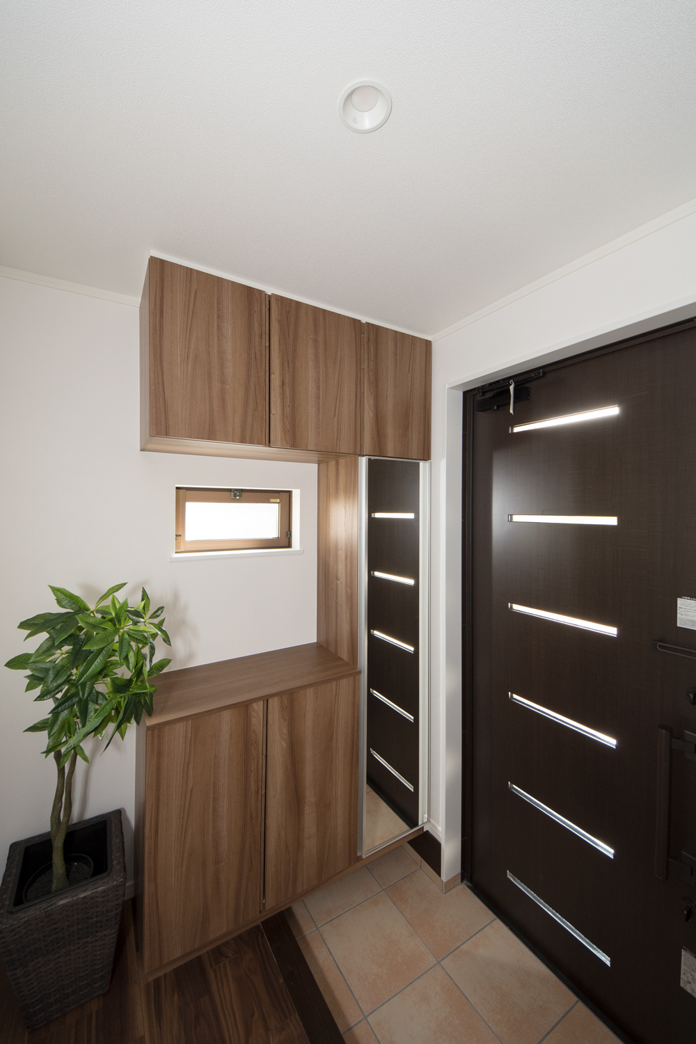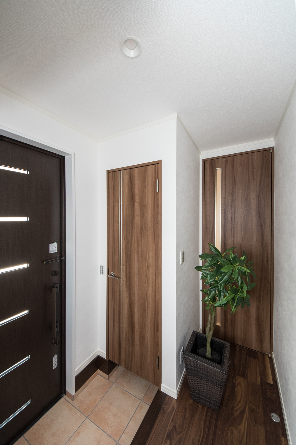 玄関ドアの横スリット部分と小窓から自然光が差し込みます。