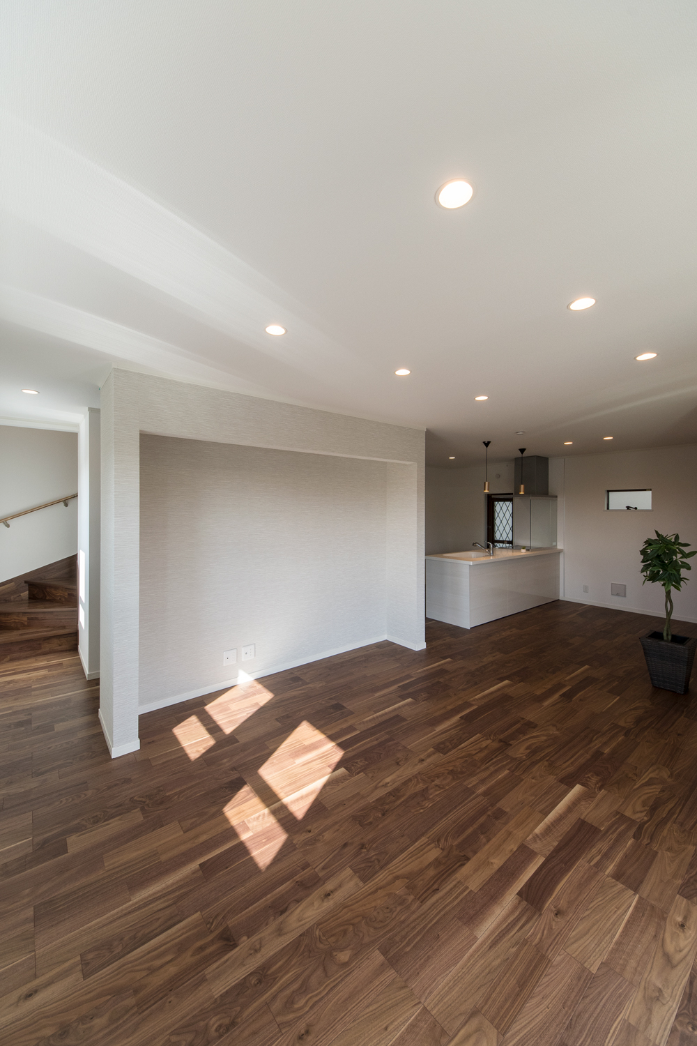 家族の帰宅が分かるリビング階段を採用。みんなが自然と顔を合わせられる家族思いの間取りです。