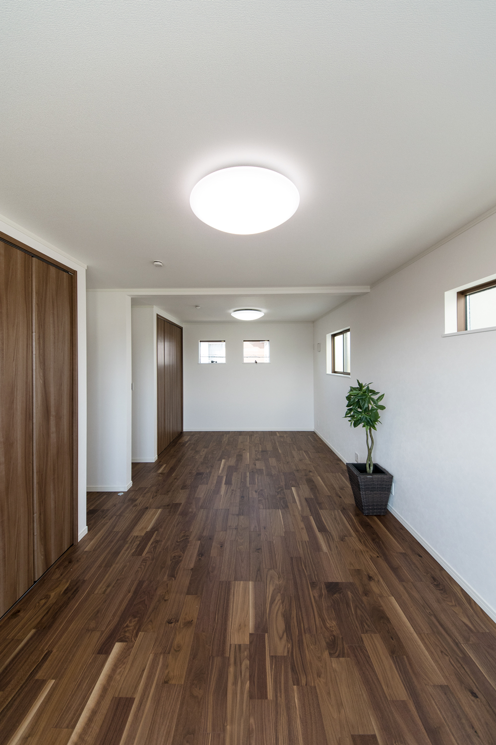 2ドア1ルームの2階洋室。お子様の成長に合わせて2部屋に仕切って使うことが可能なフレキシビリティに富んだ間取り。