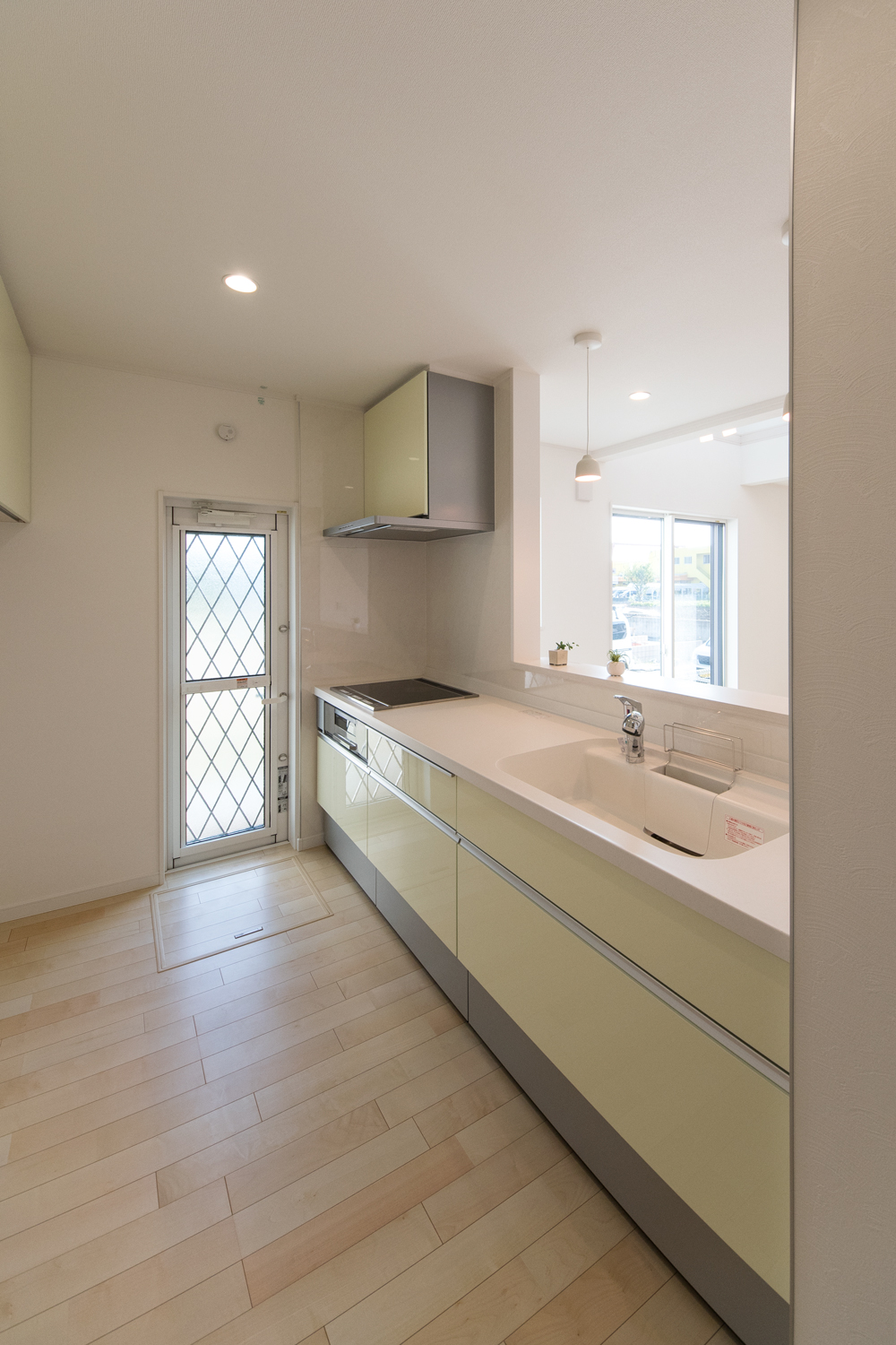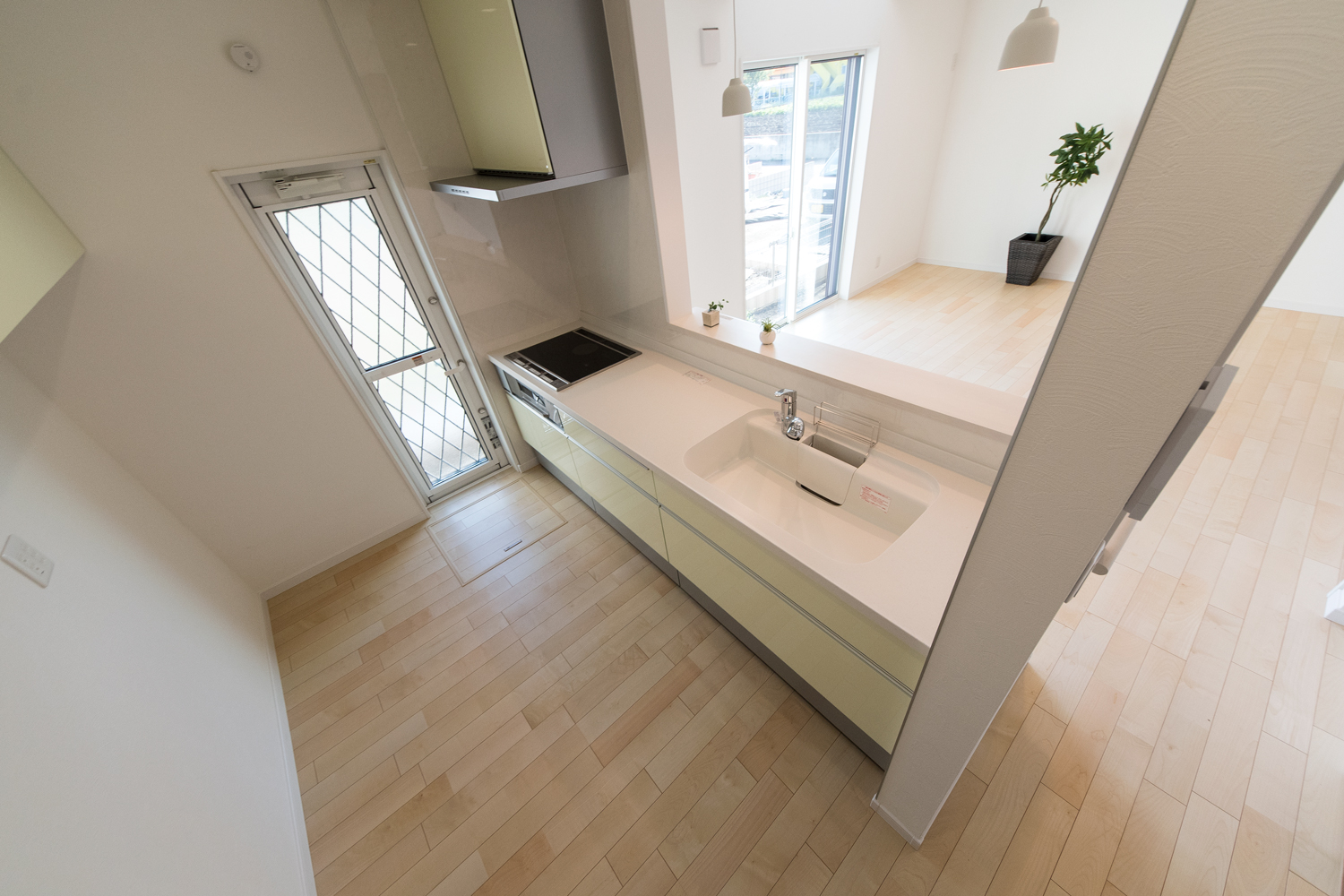 リビングを見渡せる対面式キッチン。家事をしながらご家族との会話も弾みます。