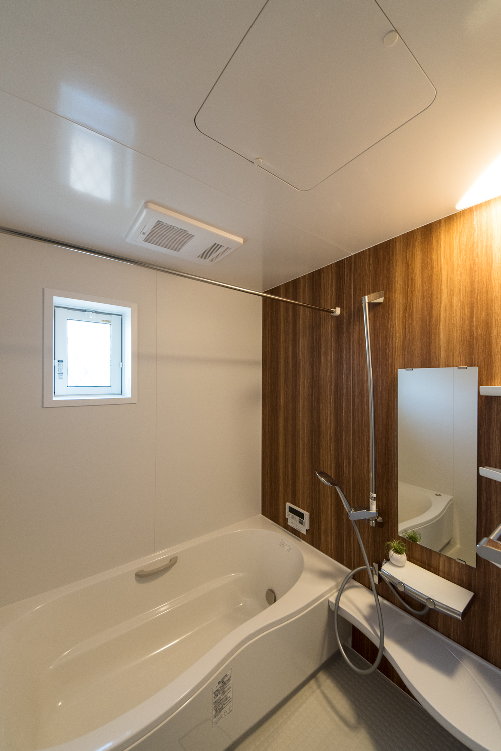 流れ模様のある天然石の豊かな表情をモチーフにしたブラウンのアクセントパネルが上質な空間を演出します。