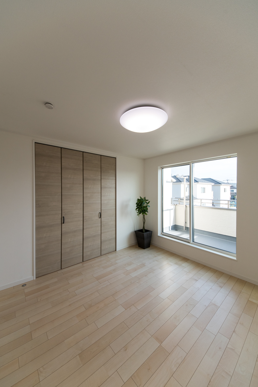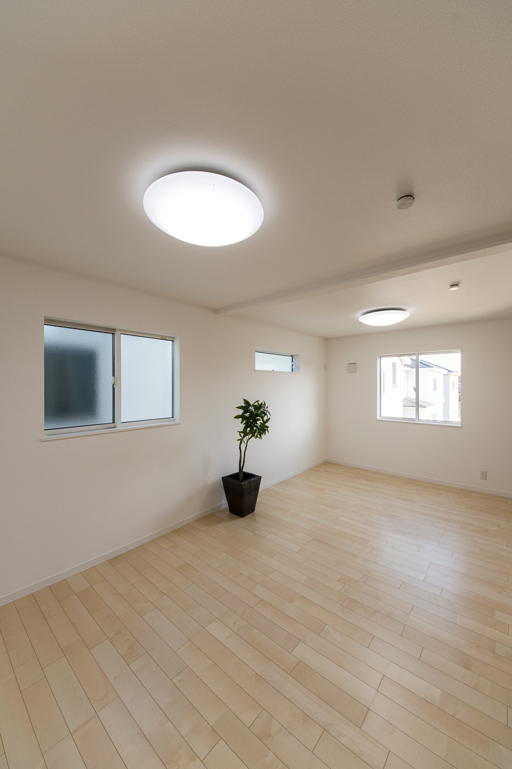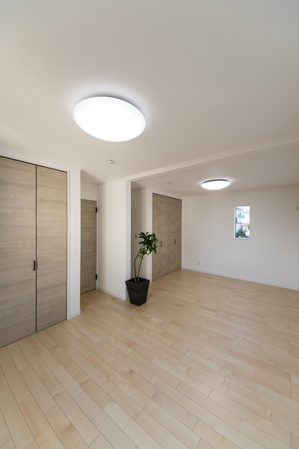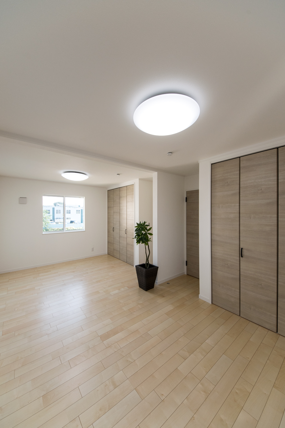 2ドア1ルームの2階洋室。お子様の成長に合わせて2部屋に仕切って使うことが可能なフレキシビリティに富んだ間取り。