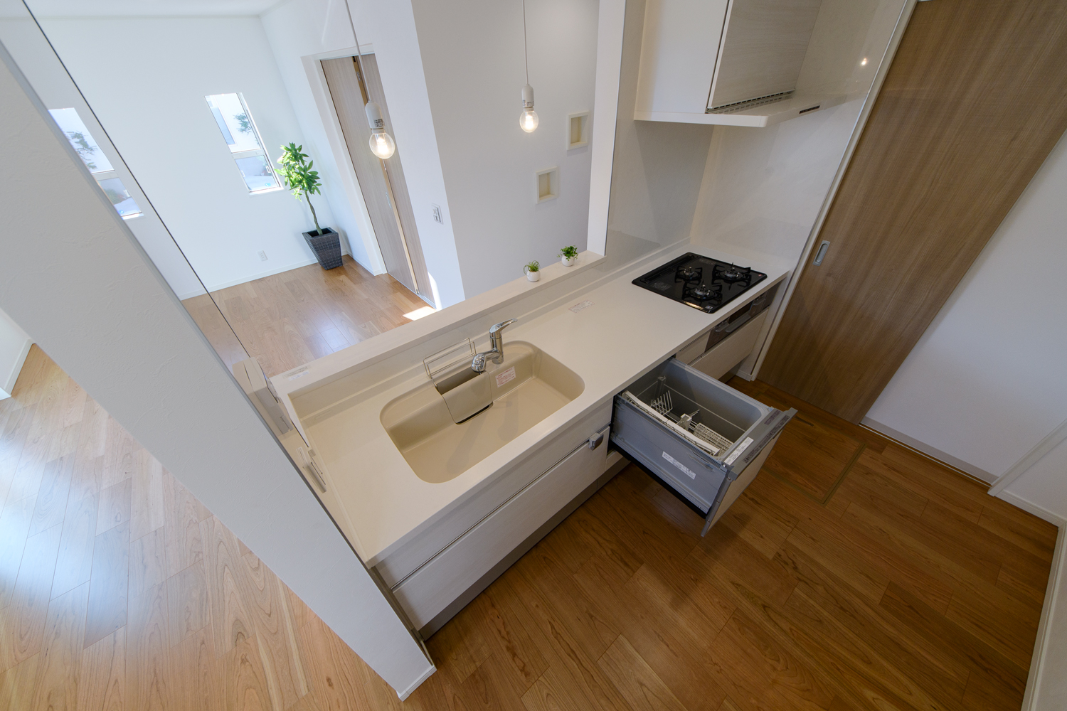 食器洗い乾燥機を施した、見た目も使い勝手も優秀なキッチン。