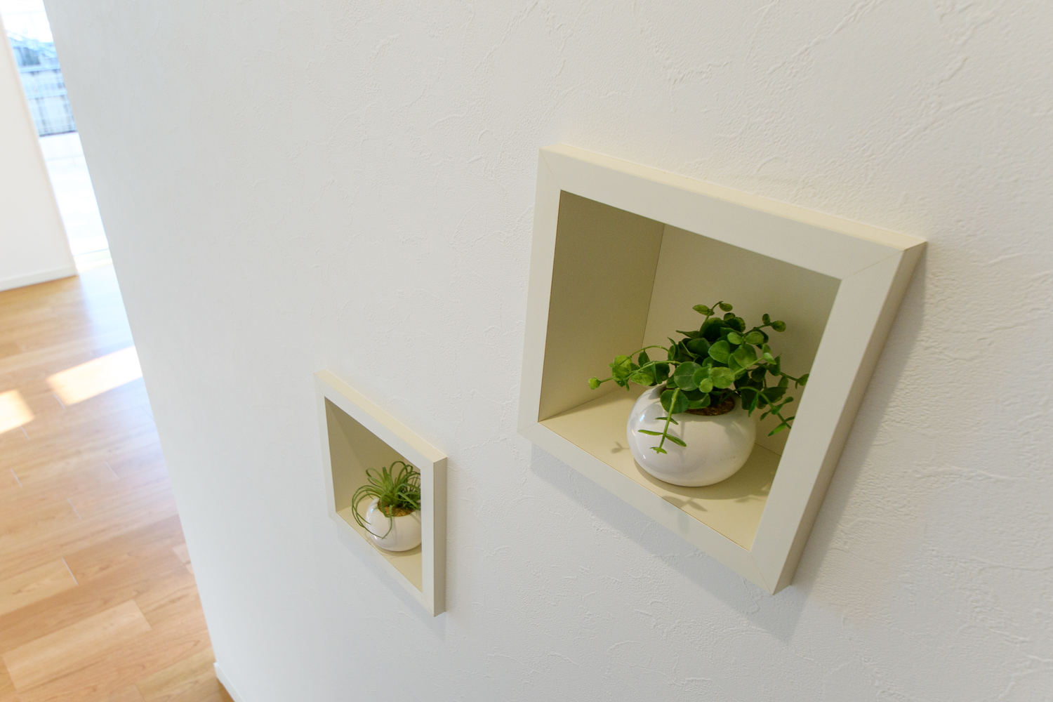 小物などをおしゃれに飾るキューブ型のかわいらしいニッチ棚。