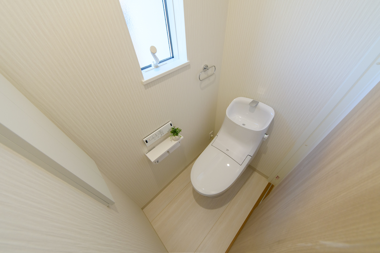 2階トイレ/白を基調とした清潔感のある内装。小窓からの光が明るさをプラスします。