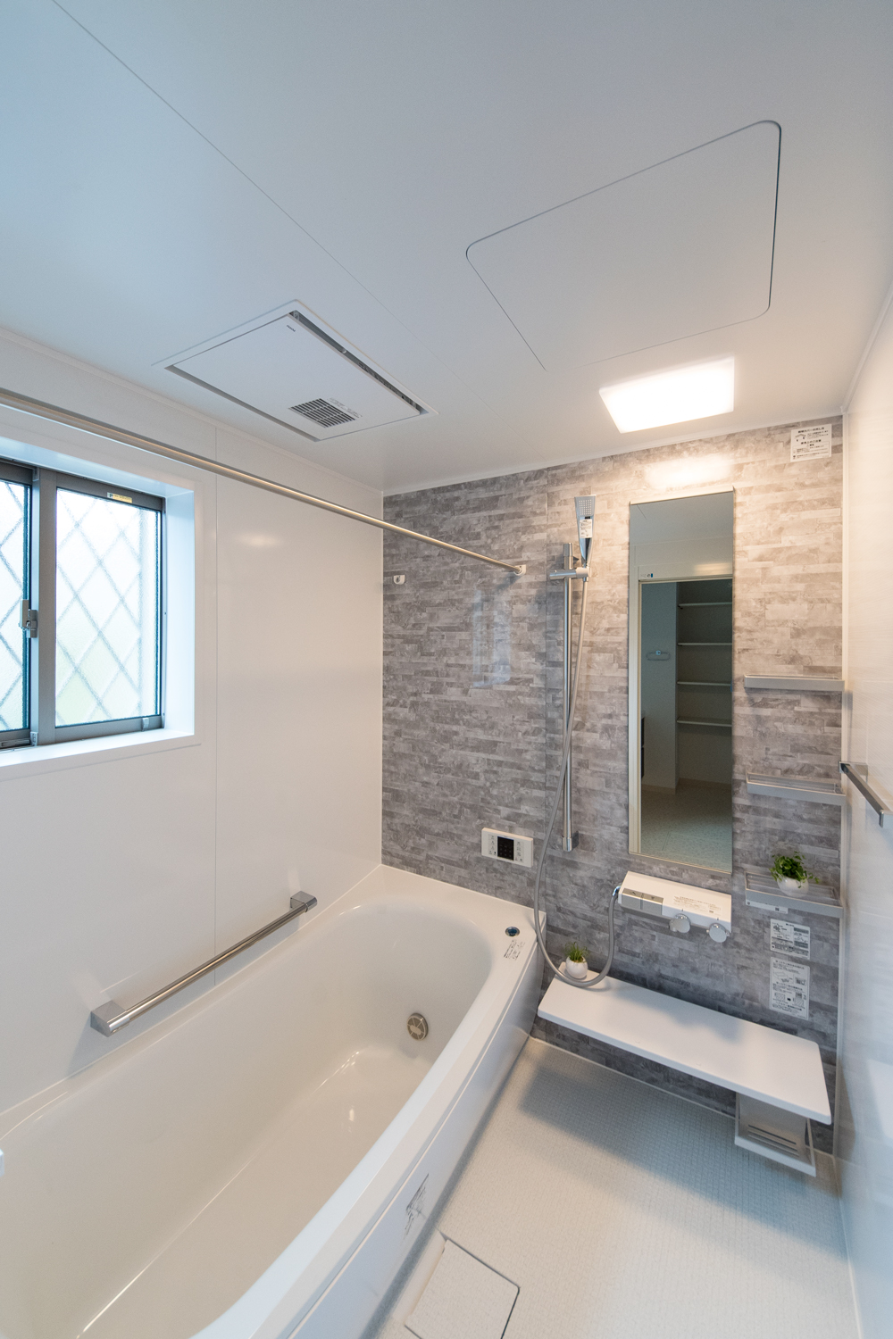 重ね合わせた石目柄のアクセントパネルが爽やかな空間を演出します。