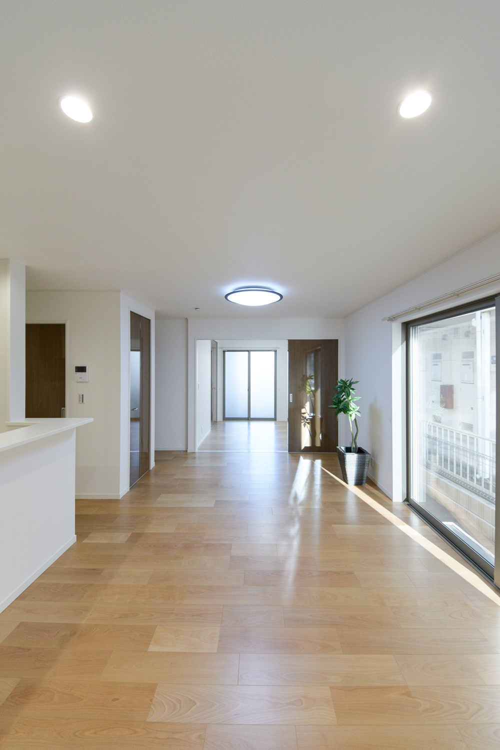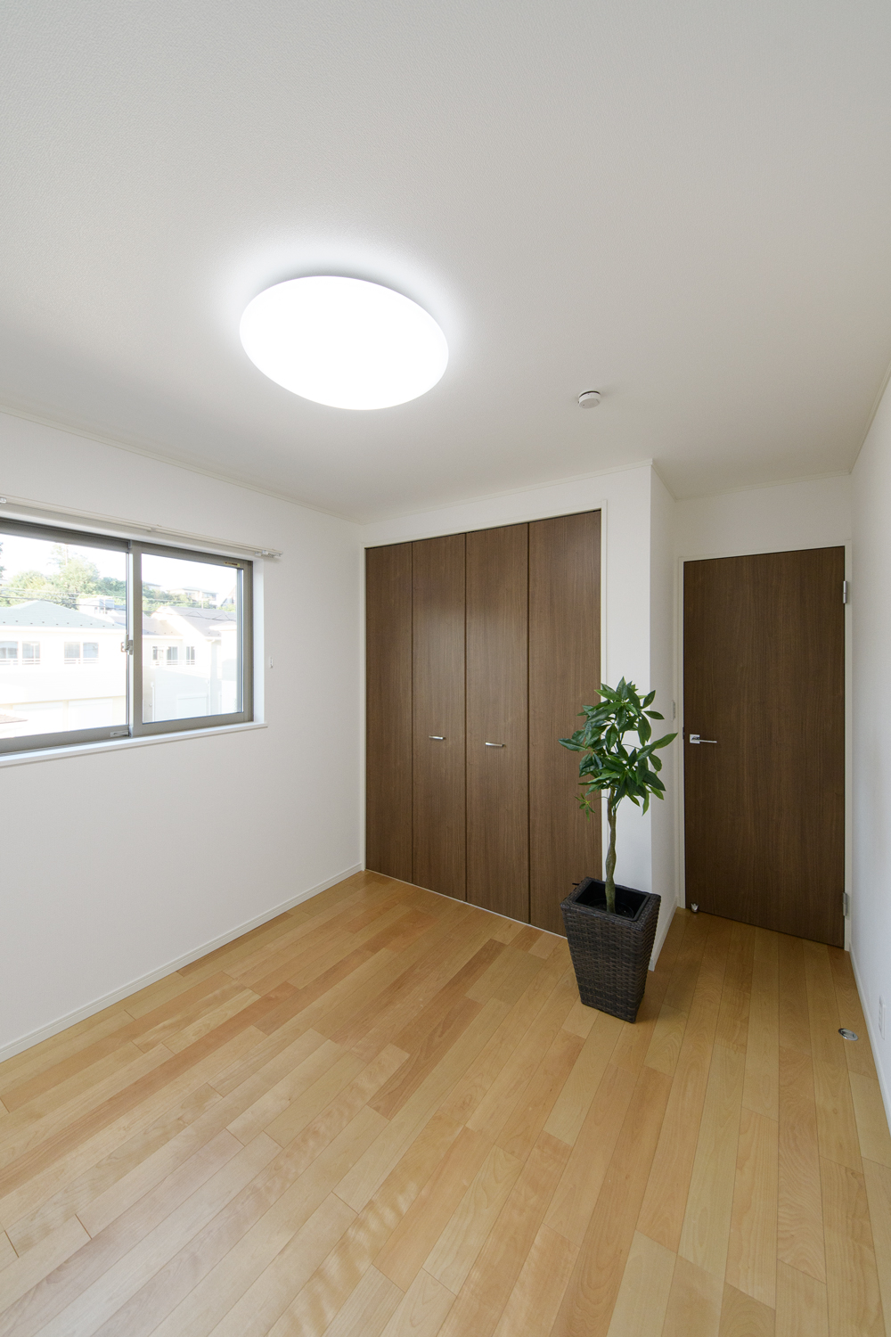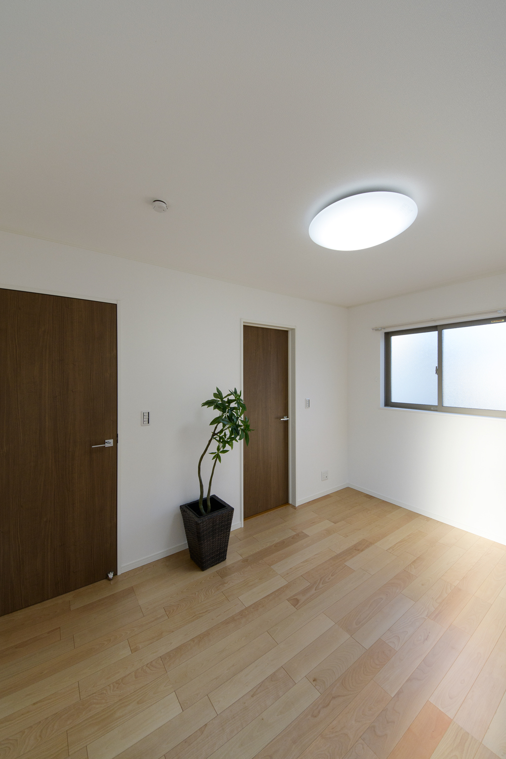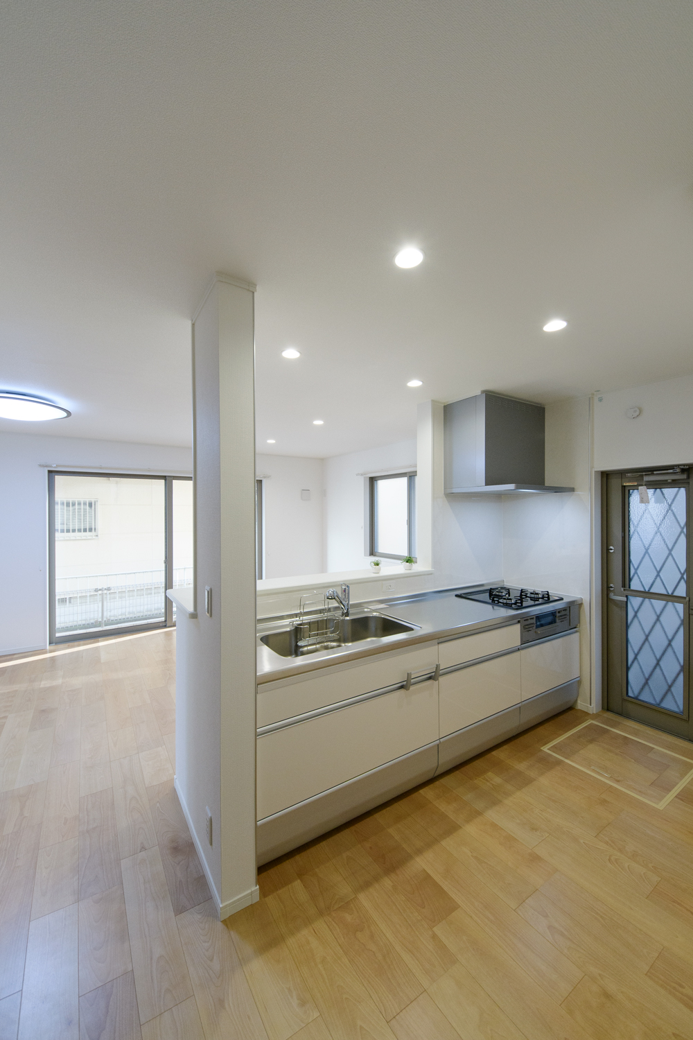 白を基調に温かみのあるオレンジの石目調サイディングをアクセントにした、ナチュラル&モダンな外観に仕上がりました。室内は大きな窓から自然のやさしい光が降り注ぐ、明るく開放的な住空間です。
