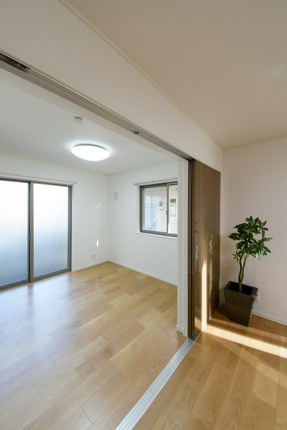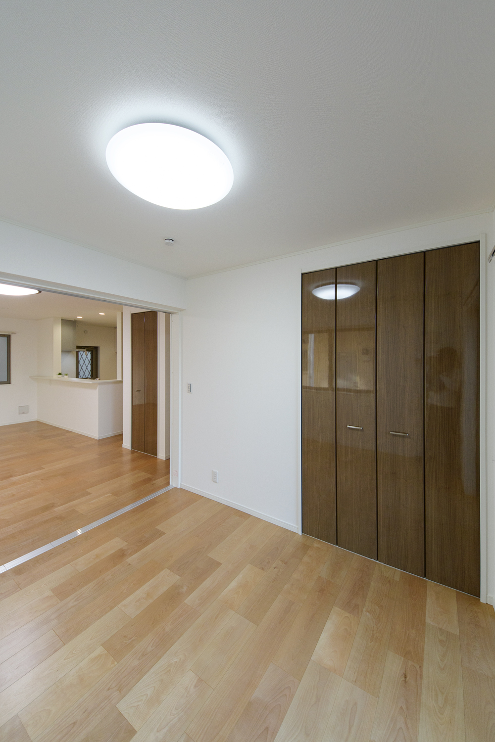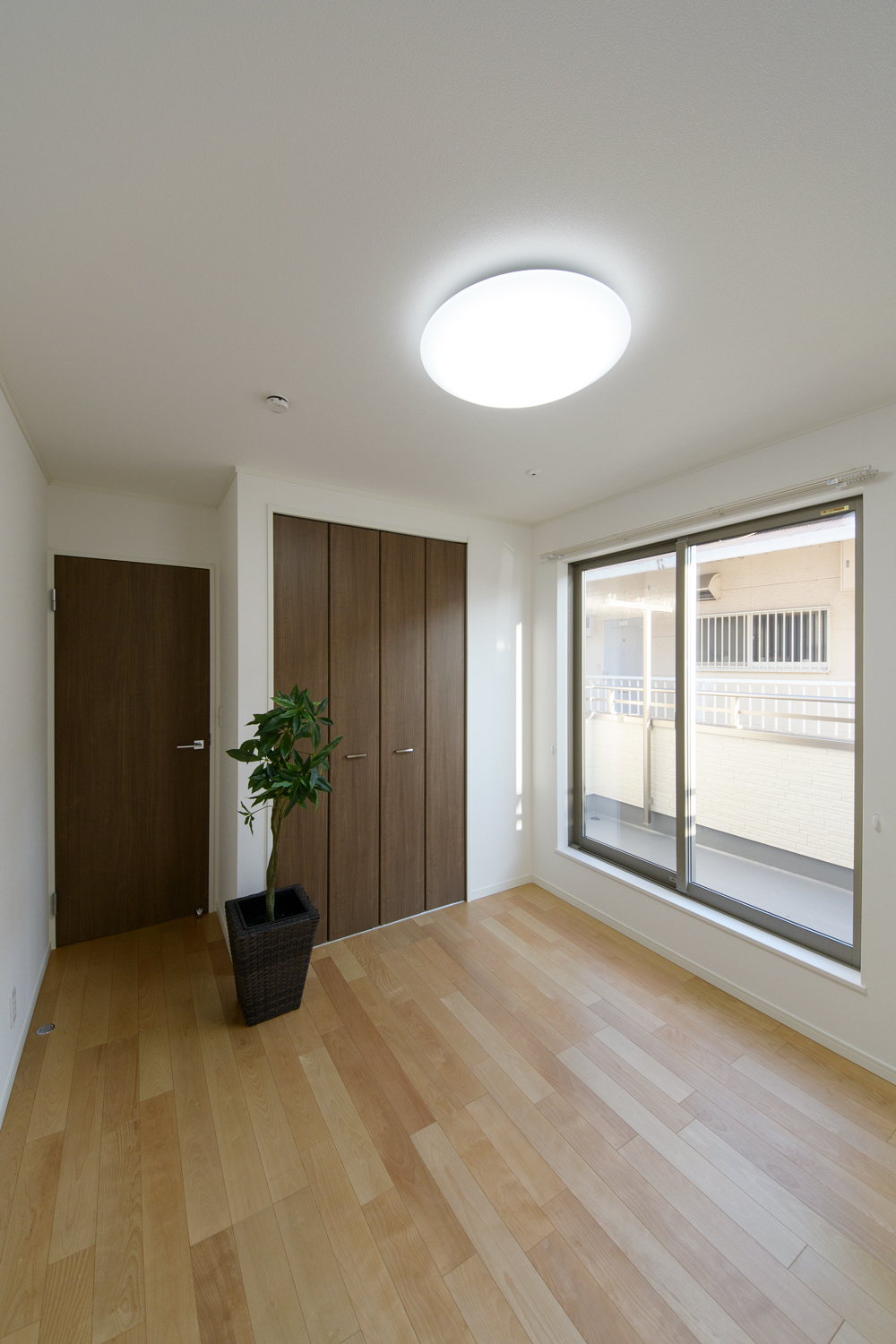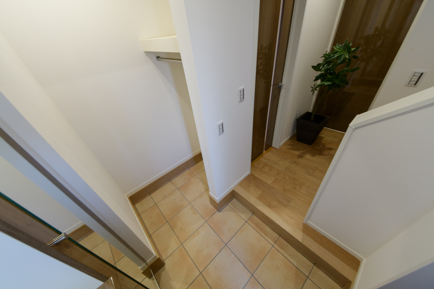白を基調に温かみのあるオレンジの石目調サイディングをアクセントにした、ナチュラル&モダンな外観に仕上がりました。室内は大きな窓から自然のやさしい光が降り注ぐ、明るく開放的な住空間です。