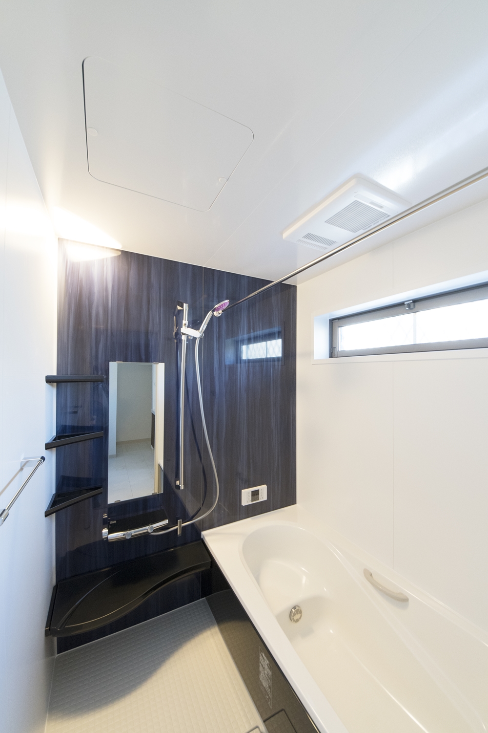 ブラックをベースにブラウンでアクセントをつけた、クールな木目調の外観。高い天井のリビングダイニングは、大きな窓からたっぷりの陽光がふり注ぐとても明るい空間になりました。