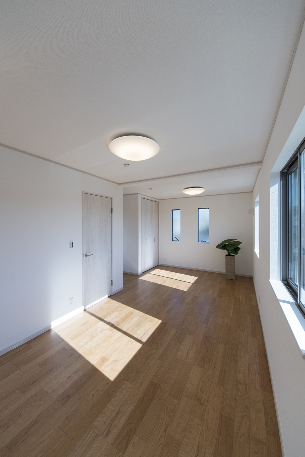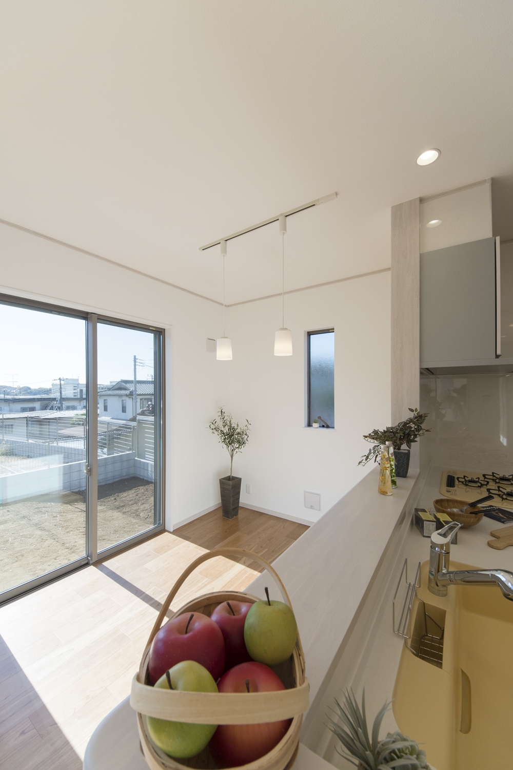 大きな窓からたっぷりの陽光がふり注ぐ 高い天井の明るいリビングダイニング