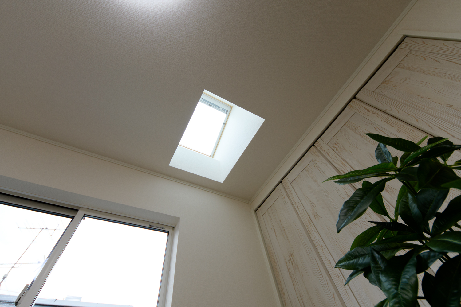 2階洋室/天井にトップライト(天窓)を設えた明るく光のあふれる空間。