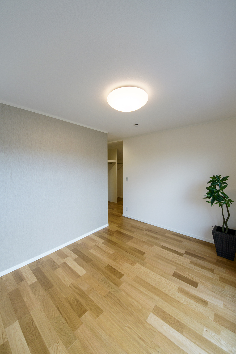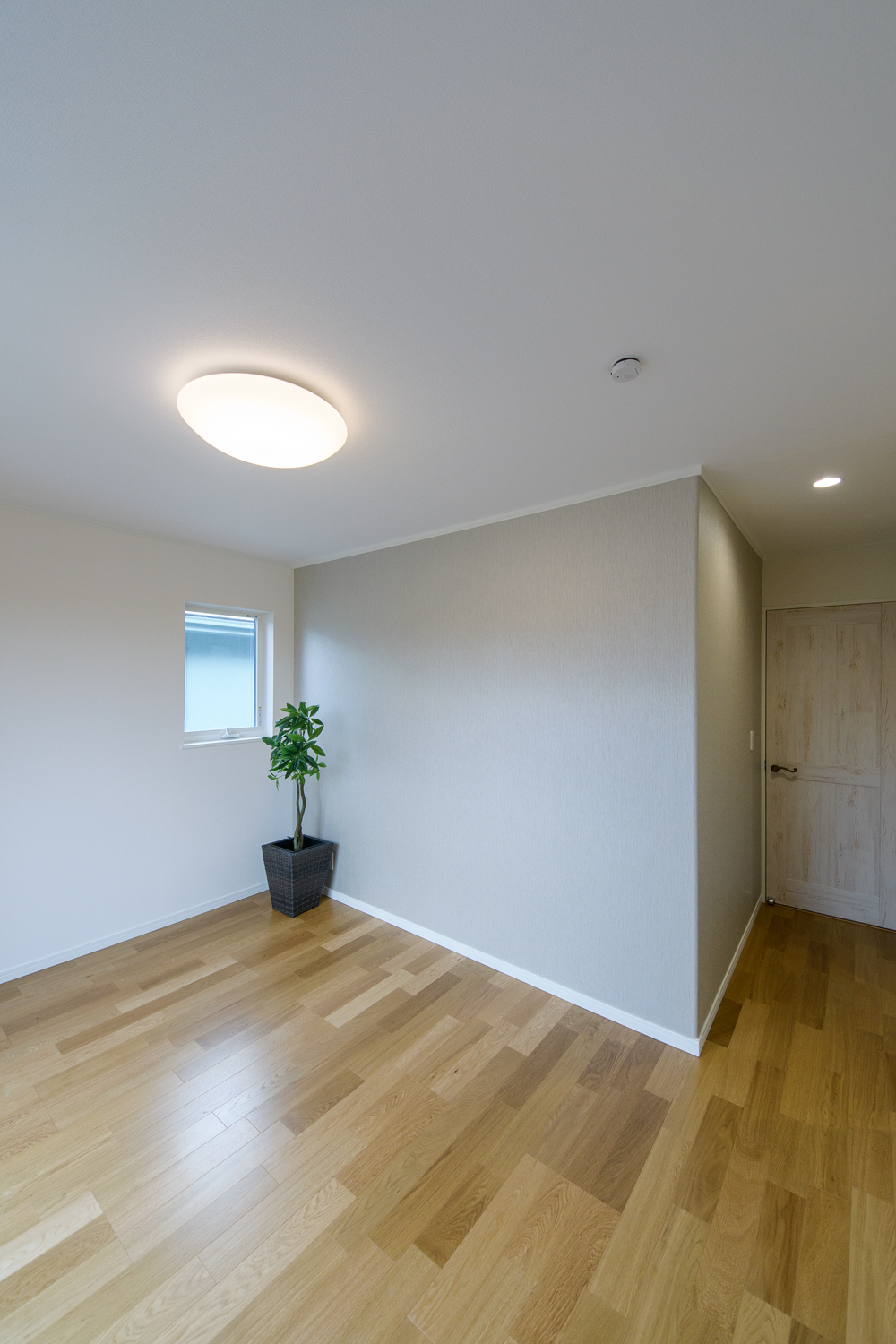 2階洋室/グレージュに白い線がきれいに入った和調デザインのクロスをアクセントにしました。