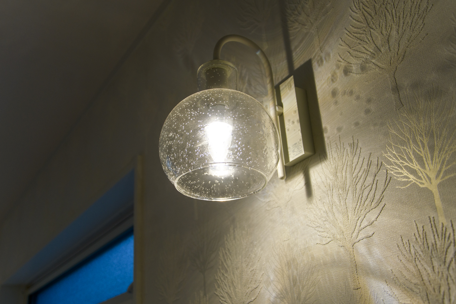 泡入りレトロガラスのブラケットライト。柔らかな光がやさしく照らします。