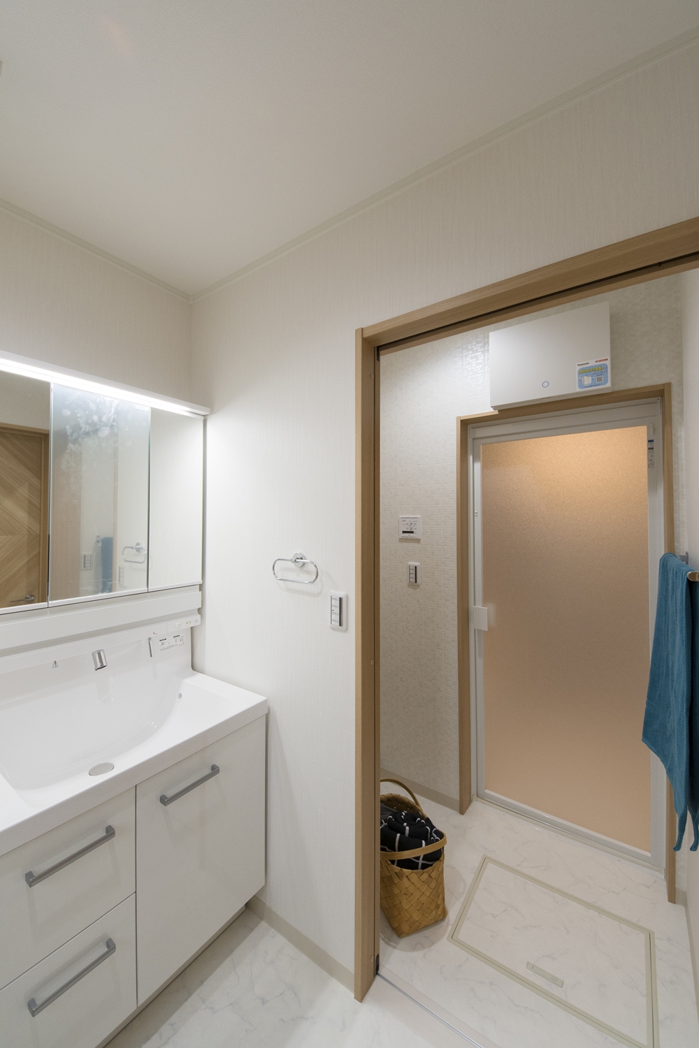 2F洗面室(子世帯)/白を基調とした清潔感のある空間。