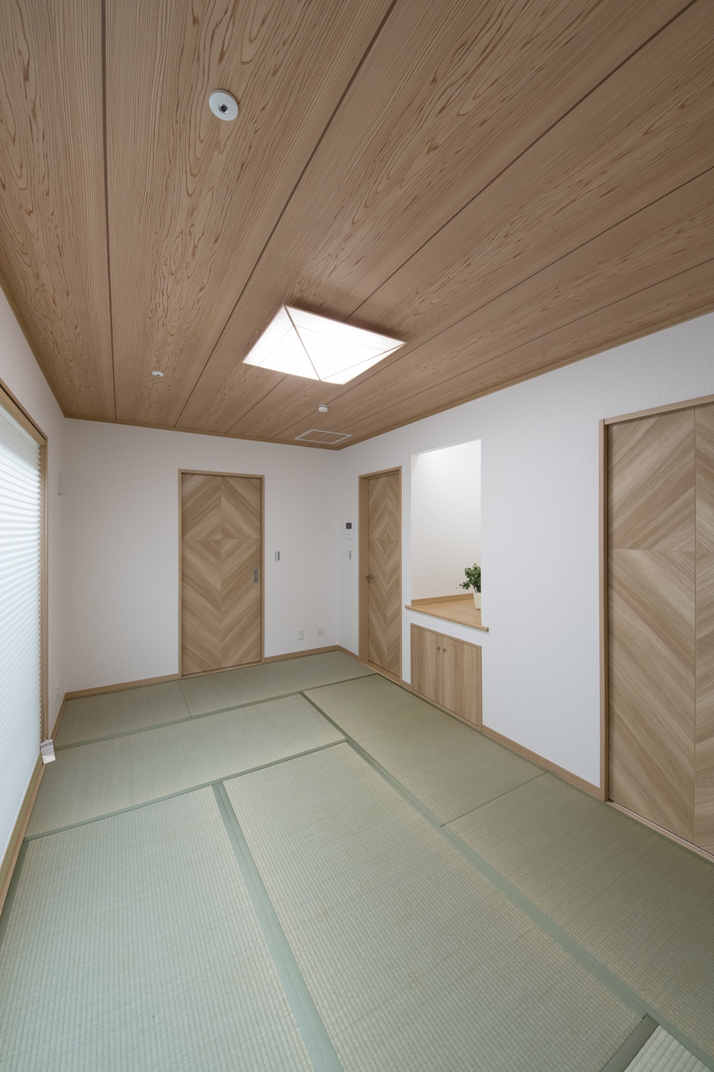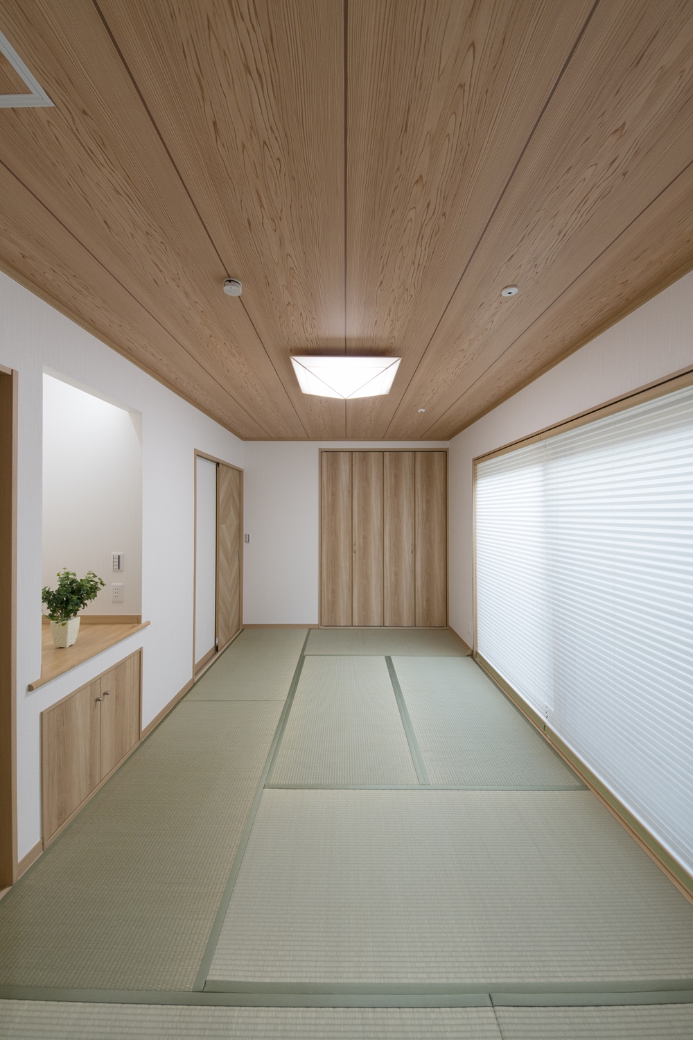 天井の自然な木目柄クロスは和風空間を優しく包みます。