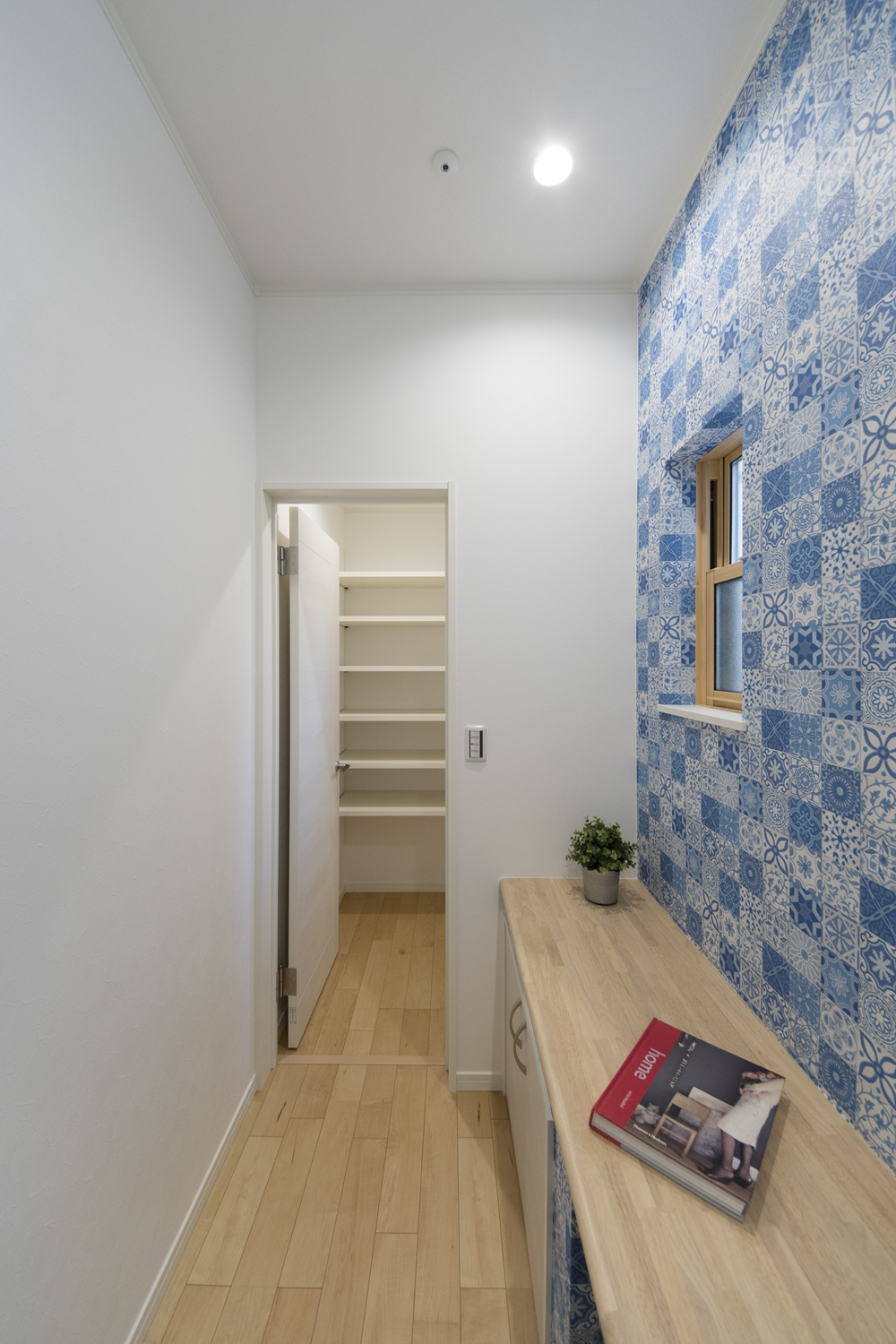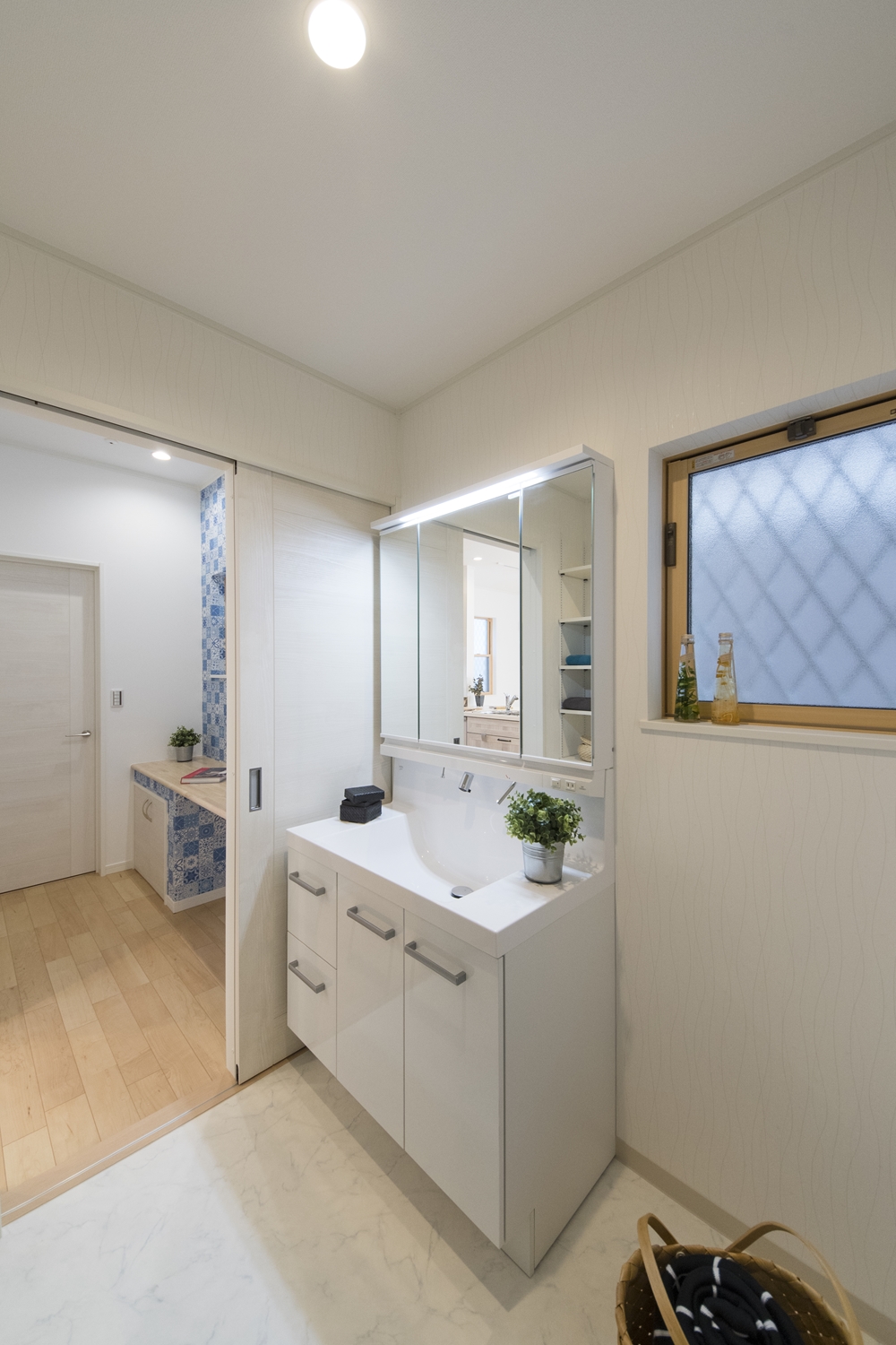 回遊動線を取入れ、家事が楽になり歩く歩数もスマートに少なく済むようにしています。朝も家族の混雑を避けつつ、身支度がスムーズに!