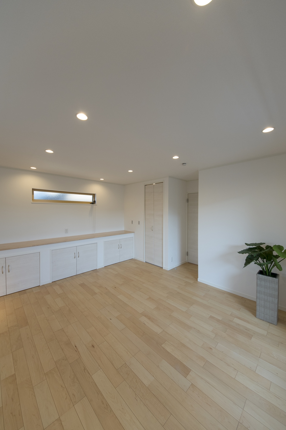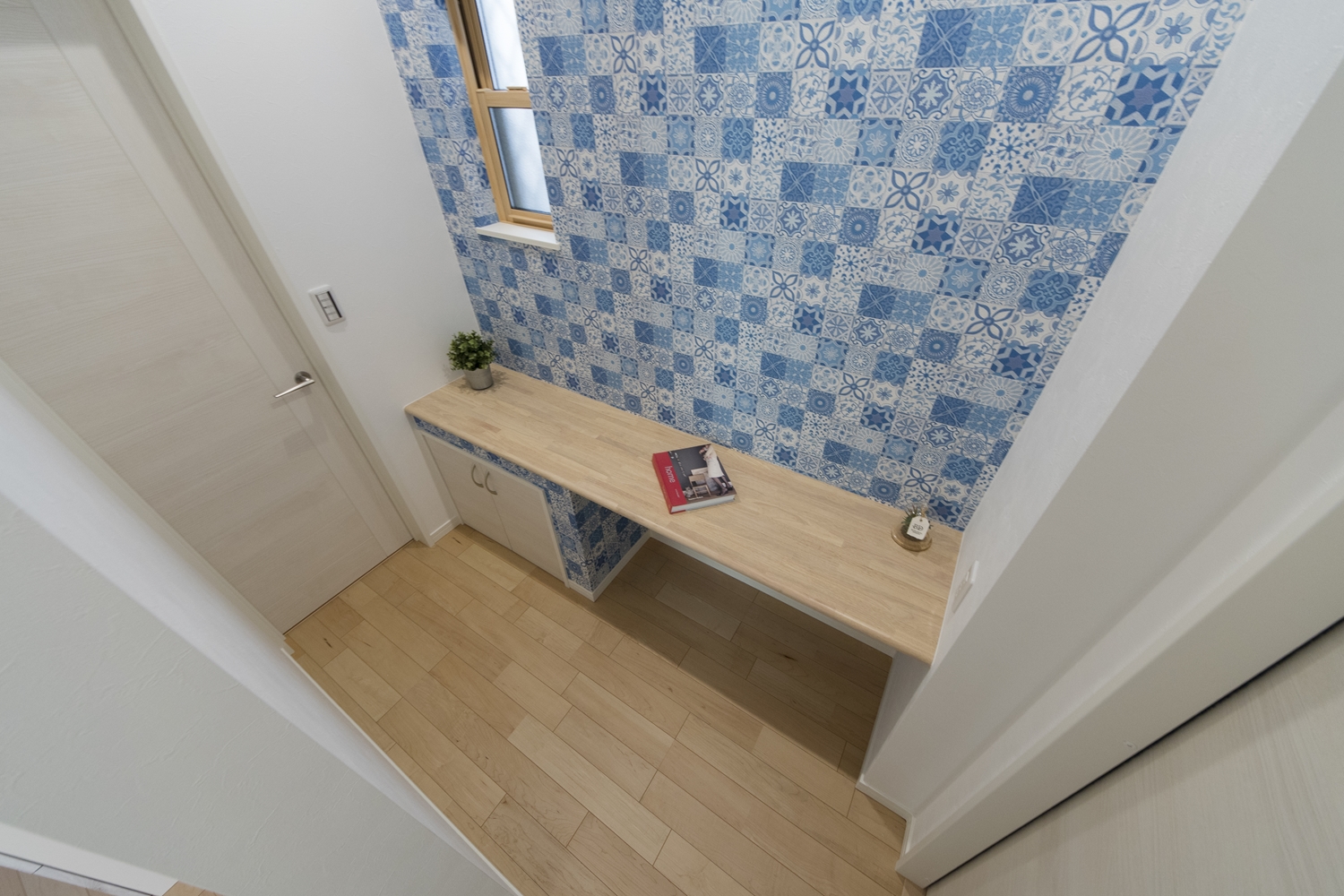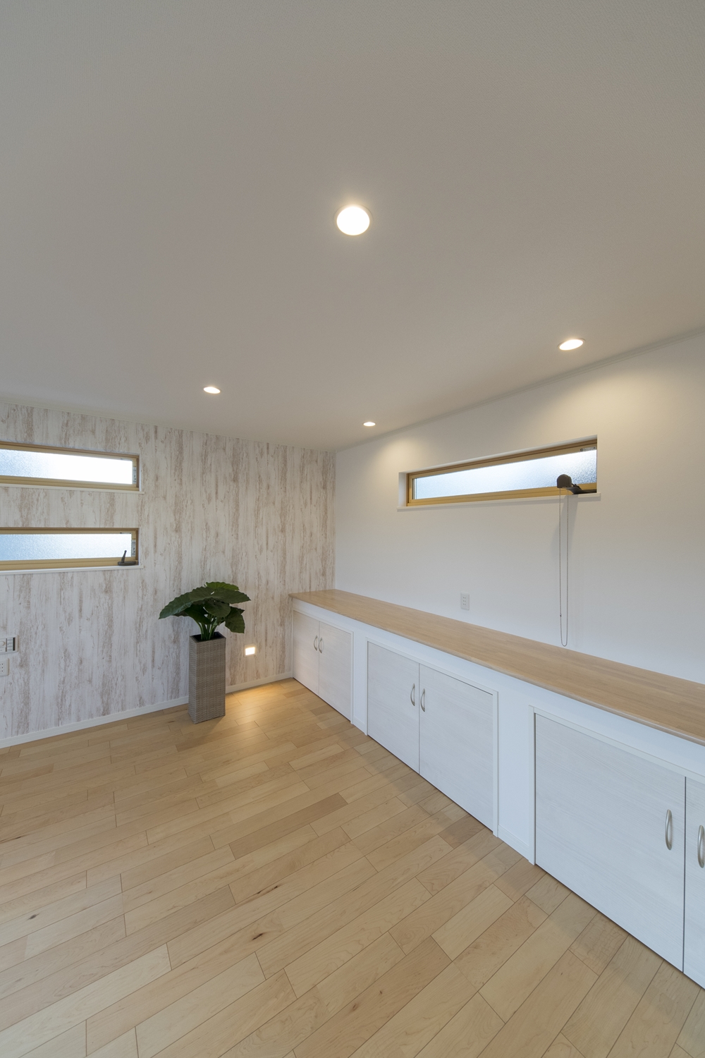2階洋室/ご家族の写真やお気に入りの物を飾ったり何かと便利な、収納付カウンターを設えました。