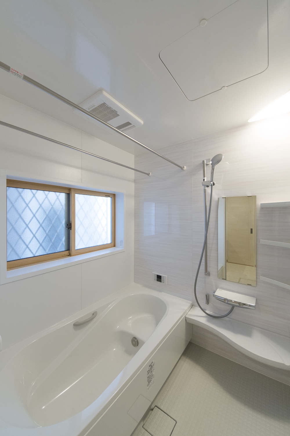 さわやかなデザインのアクセントパネルが浴室空間を彩ります。