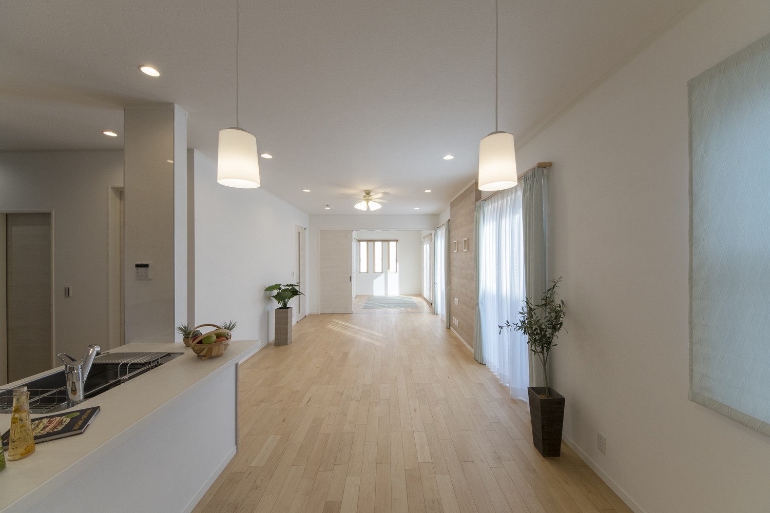 自然光に満ちた明るいリビングダイニングは、自然と家族が集う心地よさ。