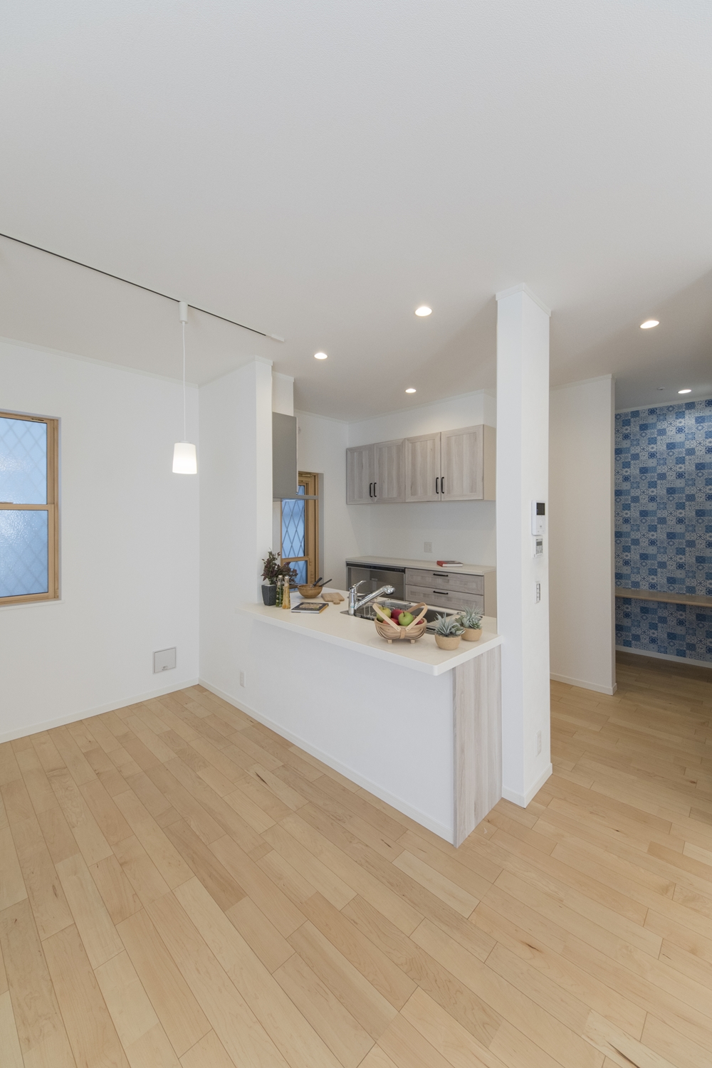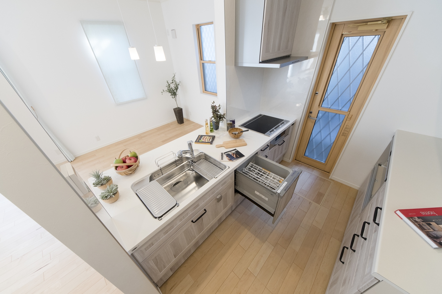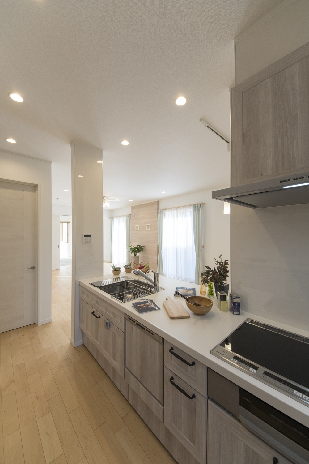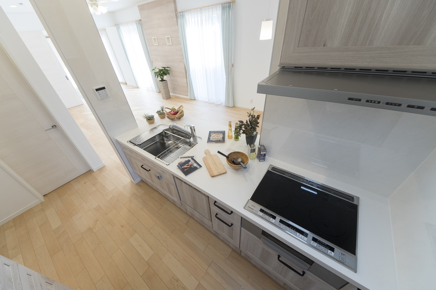 家族を見守りながら家事がこなせる、カウンター付対面キッチン。コミュニケーションを大切にしたいご家族におすすめします。