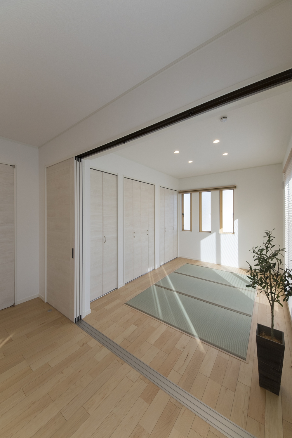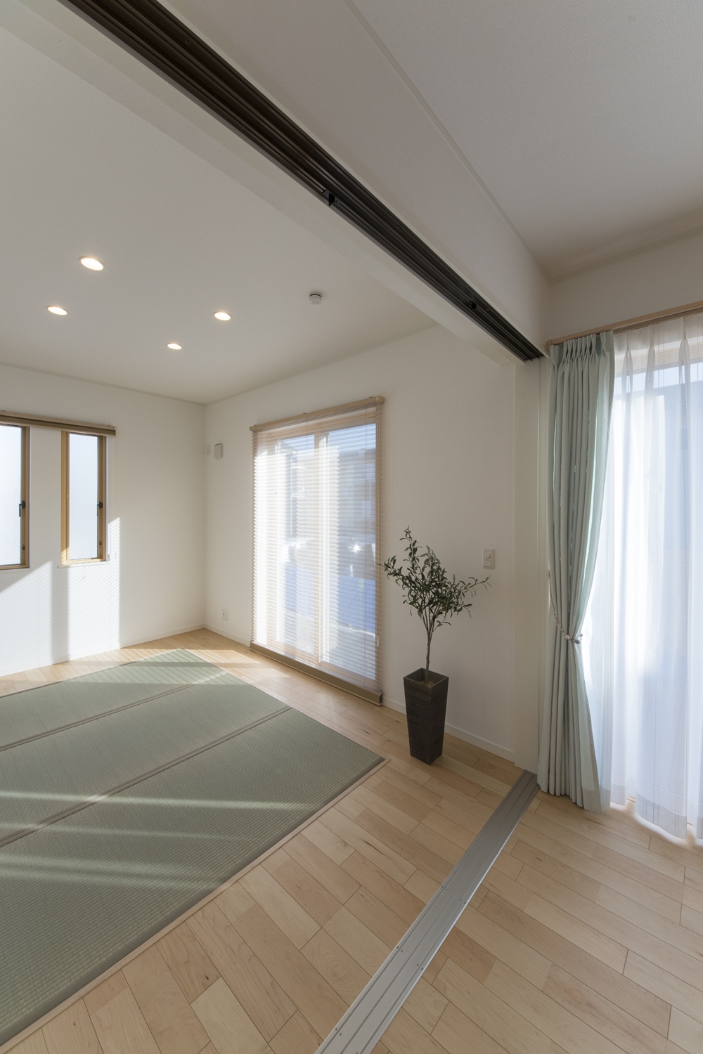 陽光が部屋全体を包み込む明るい畳敷き洋室は家族憩いの場所に。