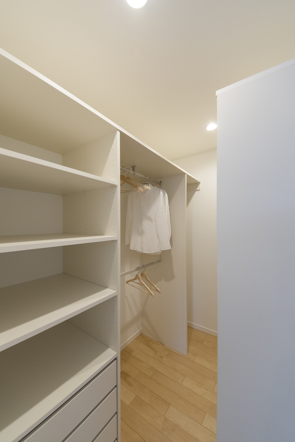 ウォークインクローゼット(2.5帖)/可動棚・引出し・ハンガーパイプを設置して機能的に♪