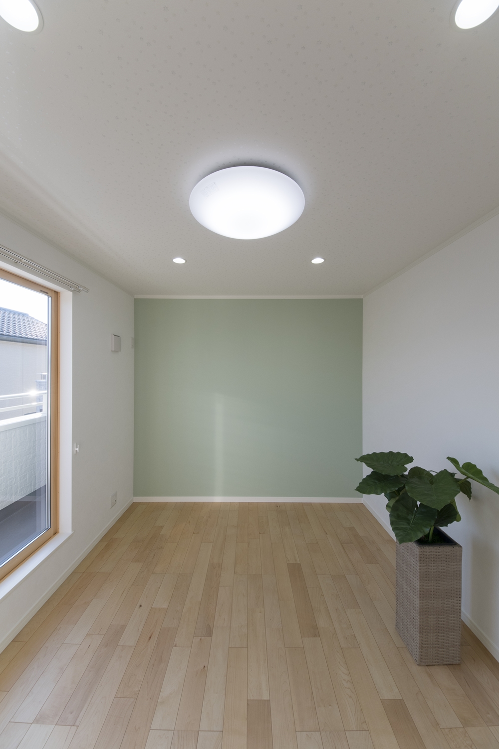 2階洋室/爽やかなグリーンのアクセントクロスが癒しの空間を演出。