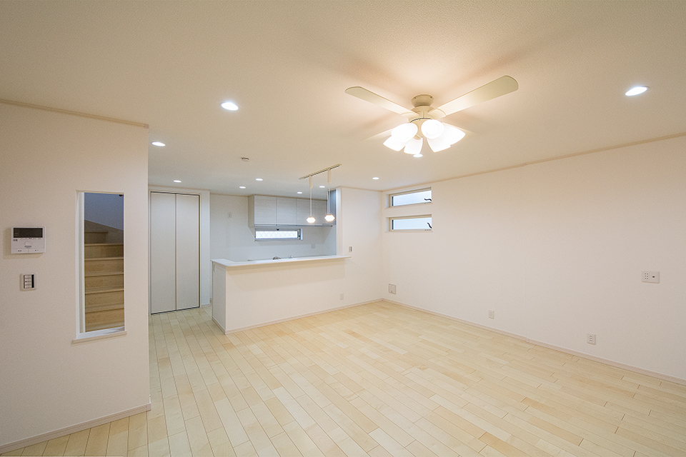 リビングにはインテリアファンを設置。空気の流れで快適な居住空間を可能に。