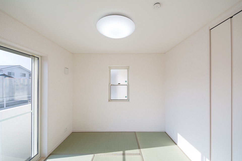 潔い白のクロスと畳のさわやかなグリーンが心地のよい空間に。